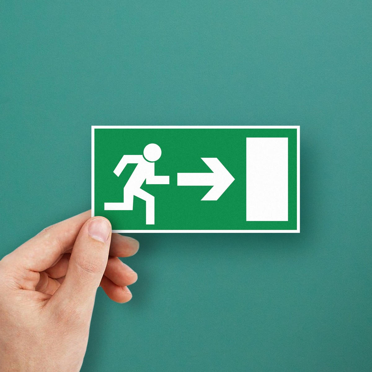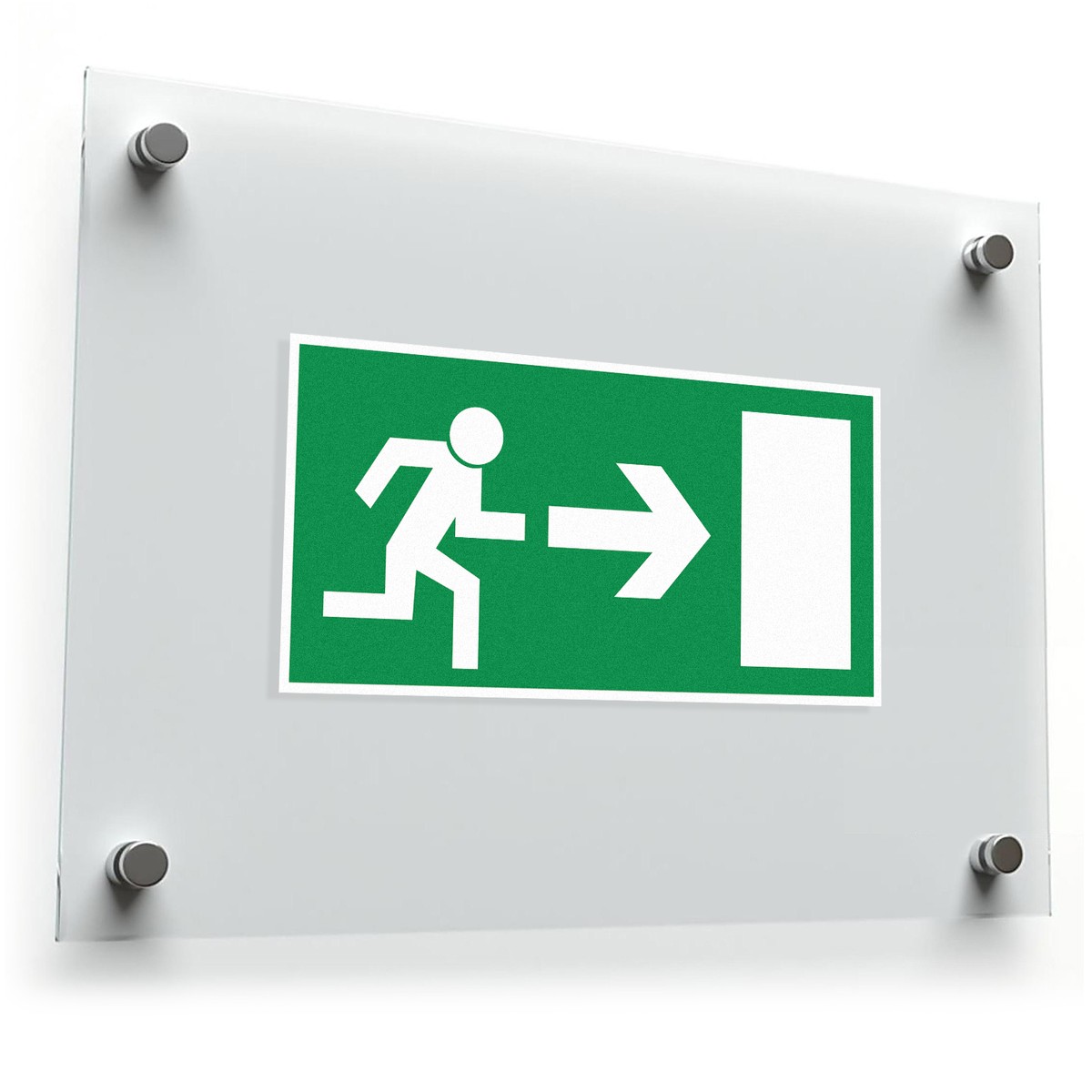 Ensure safety with this highly visible emergency exit sign featuring a running man and arrow symbol in green and white. Crafted from durable vinyl, this self-adhesive sticker is easy to apply and designed to withstand indoor and outdoor environments. Ideal for marking exit routes in public buildings, offices, and homes, it provides clear guidance during emergencies. Its weatherproof construction ensures it stays intact for long-term use, helping you comply with safety regulations. Available in multiple size options to suit your specific needs.