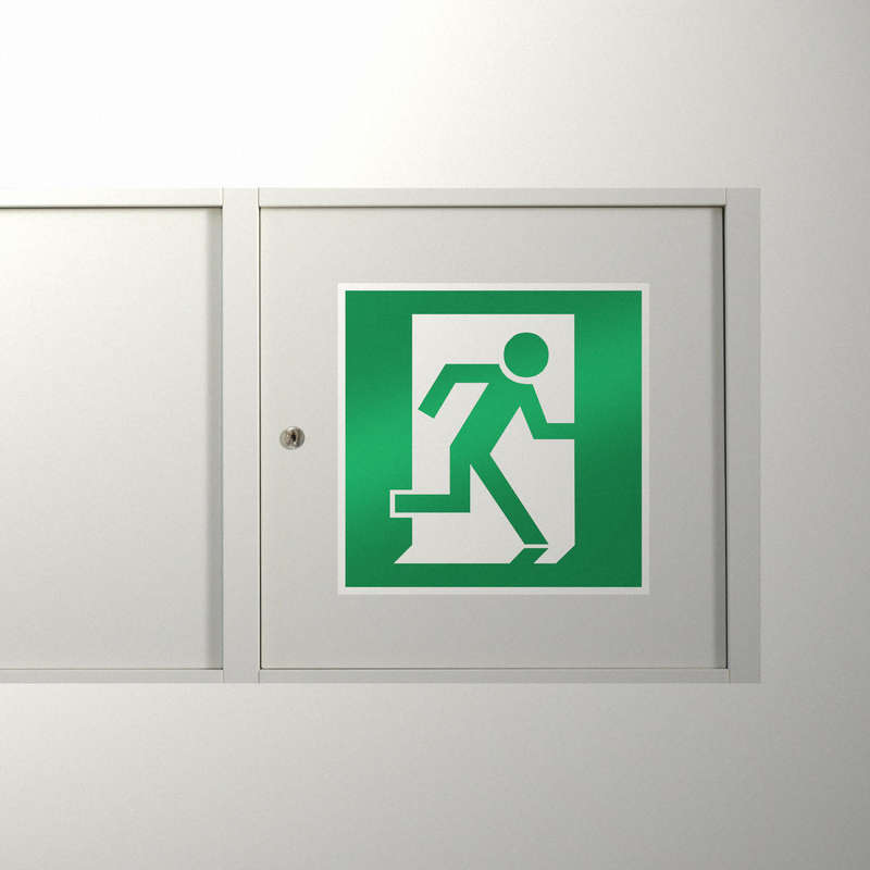 🟢 Bold Green and White Design: The classic green and white color scheme is easily recognizable, helping people quickly identify exit routes in low visibility conditions. 🟢