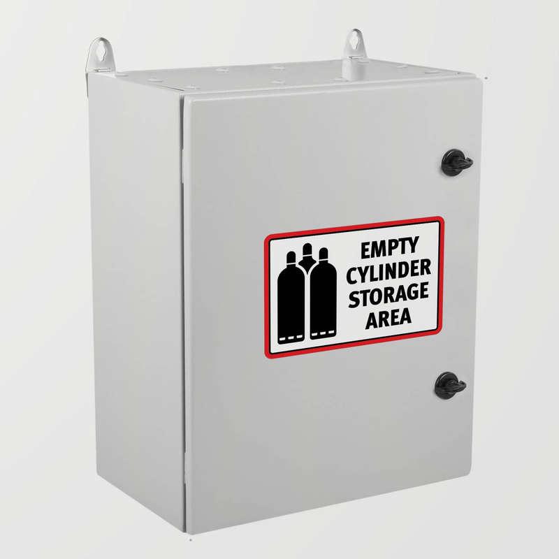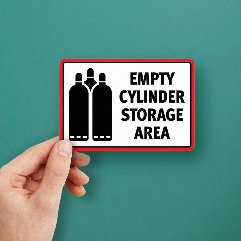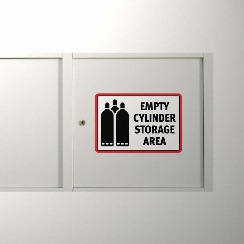 Ensure safety and compliance in your workspace with this “Empty Cylinder Storage Area” sticker. Designed with bold black lettering and a striking red border, this durable vinyl decal is perfect for marking hazardous material zones. The high-visibility color scheme ensures it catches attention, while the strong adhesive backing provides an easy application on walls, storage containers, or other surfaces. Crafted to withstand tough industrial conditions, this sticker remains vibrant and legible over time. Ideal for factories, warehouses, and laboratories, it’s available in multiple sizes, including a convenient 8×10-inch format, to suit your specific safety needs.