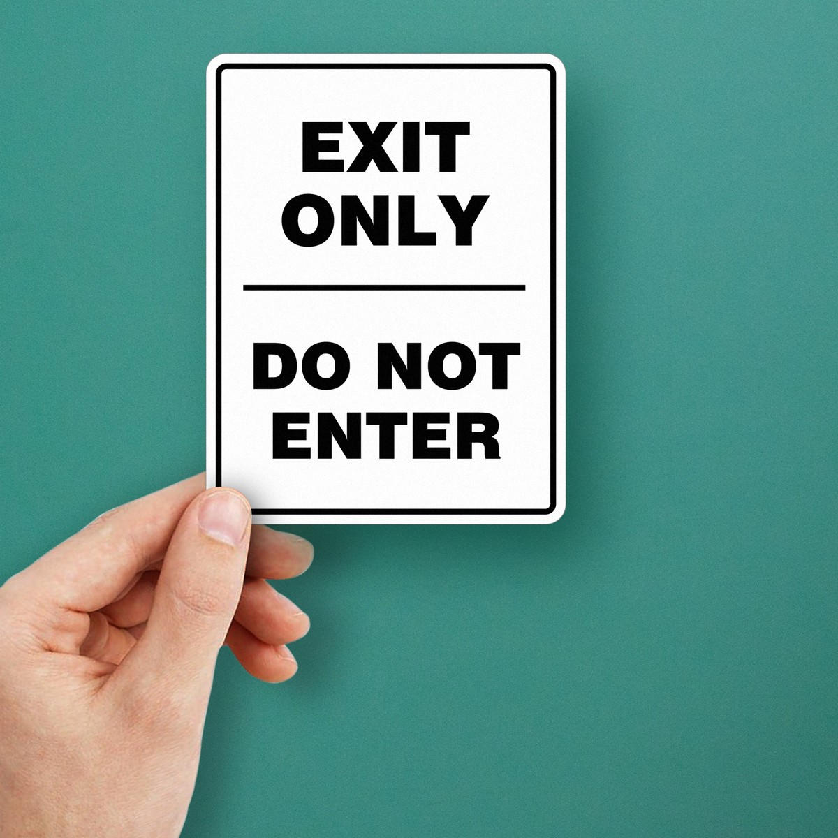 Ensure clear traffic direction and improve safety with this bold “Exit Only Do Not Enter” vinyl decal. Ideal for public spaces, workplaces, and commercial settings, this sign helps control the flow of people and vehicles by clearly marking exits and restricting entry. Made from durable, weather-resistant vinyl, it’s suitable for both indoor and outdoor use. The peel-and-stick application ensures a quick and bubble-free installation on doors, walls, or windows. Available in multiple sizes, this decal is perfect for any environment where clear directional signage is needed.