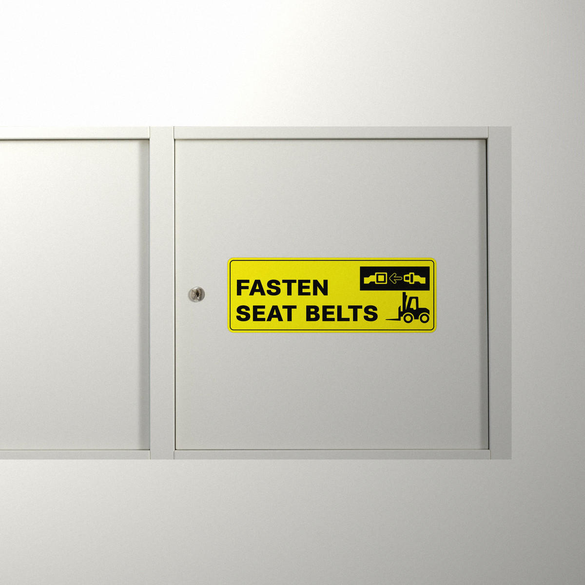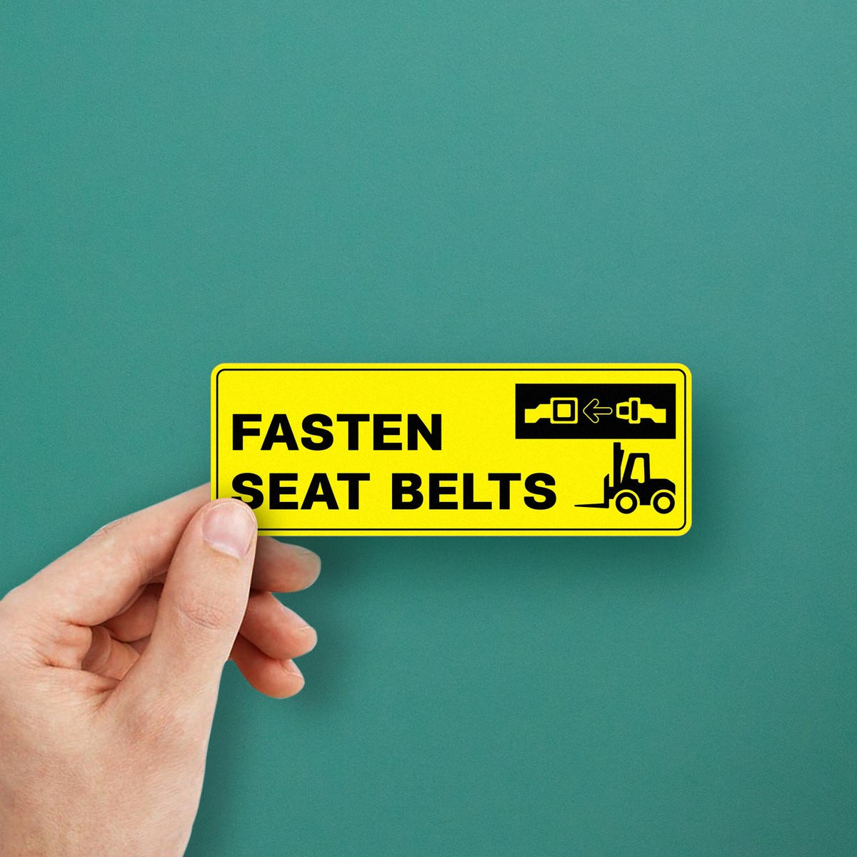 Fasten Seat Belts Sticker 🚧 Clear and Visible Safety Message: This ‘Fasten Seat Belts’ sticker delivers a bold and highly visible reminder, promoting forklift safety and reducing potential hazards in the workplace. 🚧