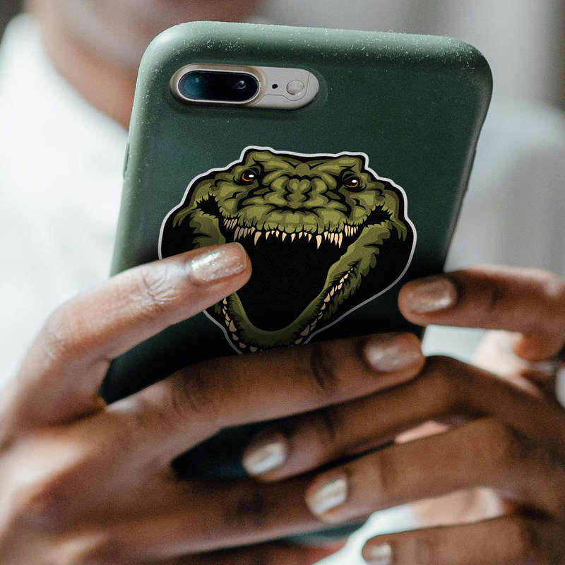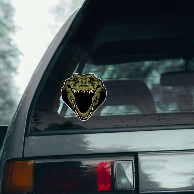 Roar into the prehistoric era with this fierce dinosaur head vinyl sticker. Featuring a vividly detailed green T-Rex with a wide, roaring mouth, this decal is perfect for dinosaur lovers and adventure seekers. The striking green and black palette highlights the ferocious features, making it an eye-catching addition to any surface. Made from durable vinyl, it’s resistant to fading and peeling, ensuring it lasts indoors or outdoors. Easy to apply and remove without residue, it’s ideal for laptops, water bottles, or walls. Available in multiple sizes, this sticker makes a thrilling gift or decor piece.