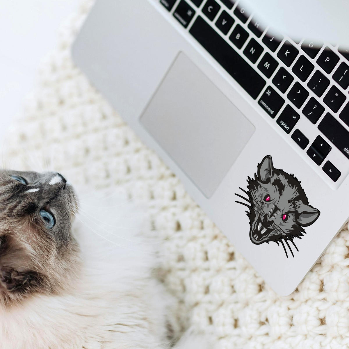 Make a bold statement with this ferocious rat head sticker, featuring sharp details, gray tones, and vivid pink eyes that demand attention. This unique design is perfect for fans of edgy art or animal-inspired graphics. Crafted from durable vinyl, this decal resists fading, peeling, and damage, making it suitable for both indoor and outdoor use. Whether applied to cars, laptops, walls, or water bottles, its strong adhesive ensures it stays securely in place. Available in multiple sizes, this sticker allows you to showcase your style with a striking and durable design that won’t go unnoticed.