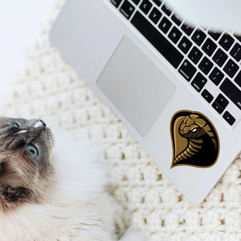 Unleash your inner adventurer with this fierce cobra head sticker, featuring a bold black and gold design that captures the power and elegance of this iconic predator. Perfect for wildlife enthusiasts and reptile lovers, this waterproof vinyl decal is built to last, resisting fading and peeling even in challenging conditions. Whether used on laptops, water bottles, helmets, or car windows, this striking cobra design adds a rugged and powerful touch to your belongings. Easy to apply and remove, this versatile sticker is available in multiple sizes, making it an ideal choice for all your decorative needs.