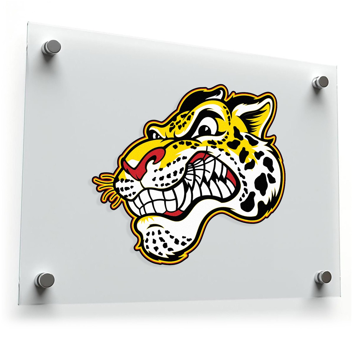 Fierce Leopard Cartoon Sticker 🐆 Fierce Leopard Design: This vibrant leopard cartoon sticker features a bold and dynamic design, showcasing a snarling leopard in eye-catching colors. Perfect for sports fans and lovers of daring decor! 🐆