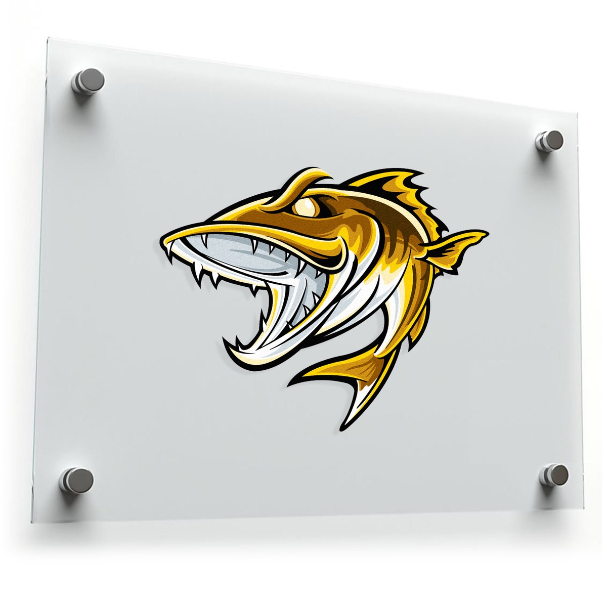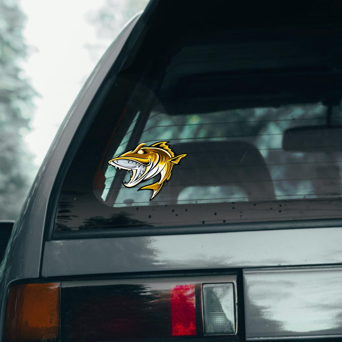 Fierce Predator Fish Vinyl Decal 🎣 Fierce Predator Fish Design: This bold vinyl decal features a striking yellow and white predator fish design, perfect for adding a fierce and unique touch to your car, boat, or fishing gear. 🎣