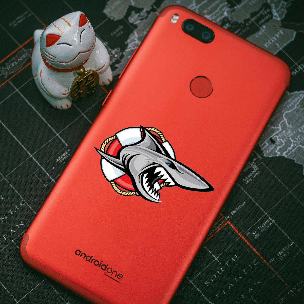 Fierce Shark Vinyl Sticker 🦈 Bold Shark Design: This fierce shark vinyl sticker is perfect for anyone looking to make a statement with a bold and dynamic marine-themed decal, complete with a lifebuoy backdrop. 🦈