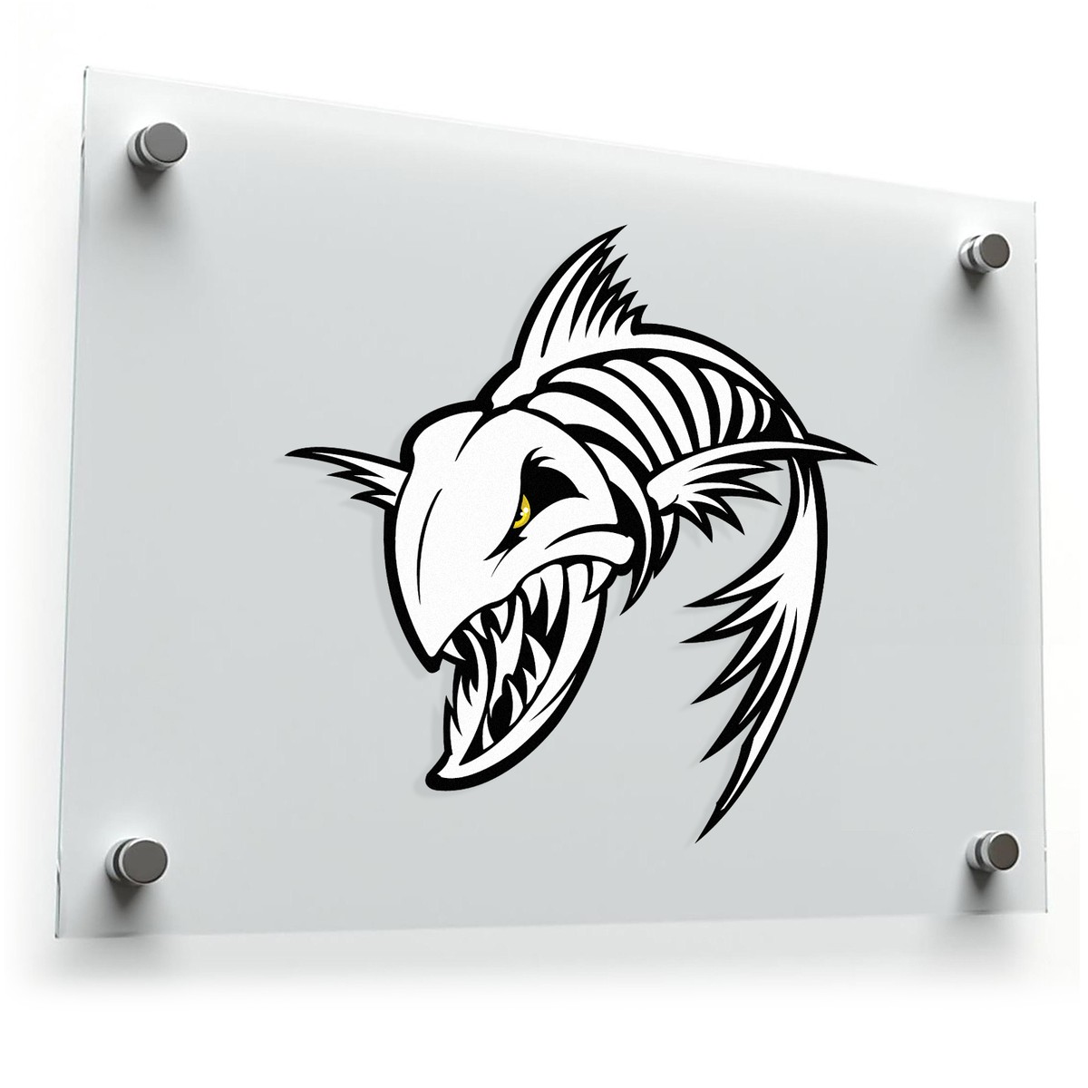 Embrace bold style with this fierce skeleton fish sticker, a perfect choice for fans of edgy and aggressive designs. The black and white color scheme offers a striking contrast, adding a dramatic flair to cars, boats, laptops, and more. Made from high-quality, waterproof materials, this decal is crafted to last, making it suitable for both indoor and outdoor use. Available in multiple sizes, this skeleton fish decal is easy to apply and remove, allowing you to customize your belongings with a unique, attention-grabbing look that speaks to your personality and love for adventurous designs.
