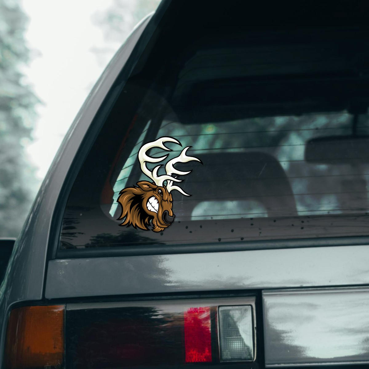 Unleash the wild with this bold, cartoon-style stag head vinyl sticker. Perfect for cars, laptops, or walls, this fierce deer decal adds a powerful statement to your belongings. The high-quality vinyl ensures easy application and removal without leaving residue. Its weather-resistant material makes it ideal for both indoor and outdoor use, offering durability and vibrant colors. Available in multiple size options, this sticker is a great way to personalize your space with a unique, animal-inspired touch.