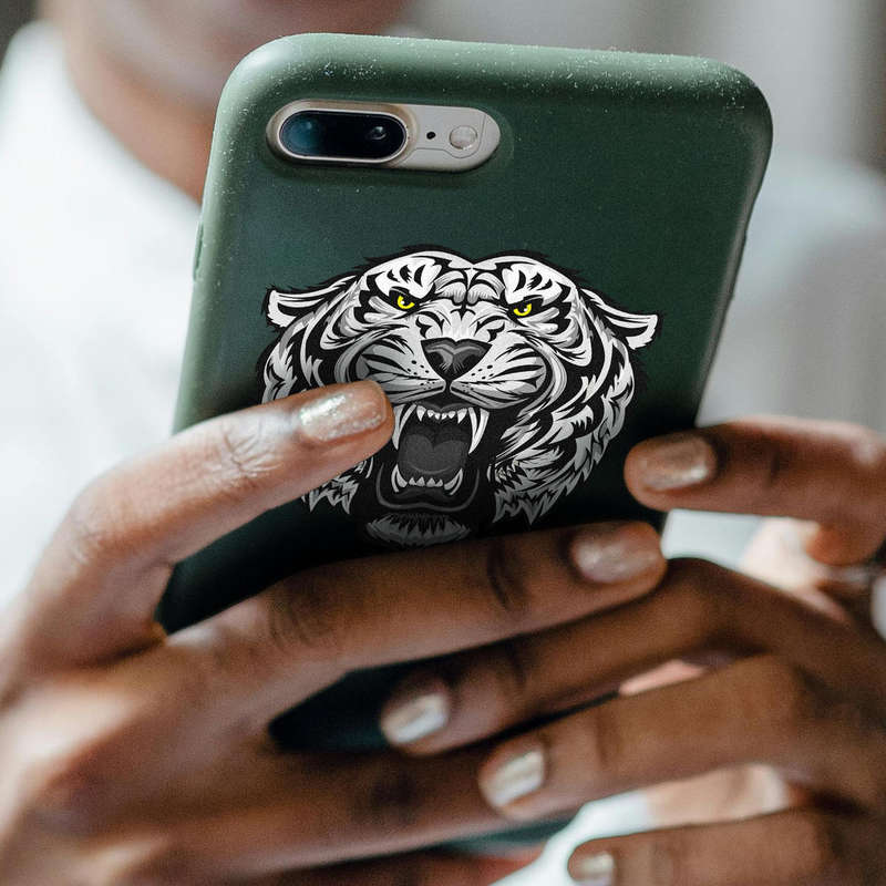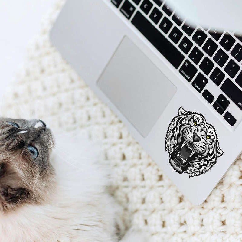 Fierce White Tiger Vinyl Decal 🐅 Powerful White Tiger Design: Featuring an intricate and bold design with piercing yellow eyes, this white tiger decal embodies strength and elegance, perfect for wildlife enthusiasts. 🐅