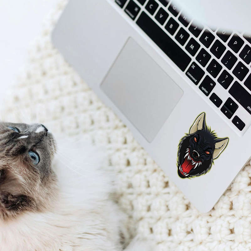 Fierce Wolf Head Sticker 🐺 Powerful Wolf Design: This sticker features a fierce wolf head with bold black and red accents, capturing the raw intensity of the wild in an unforgettable design. 🐺