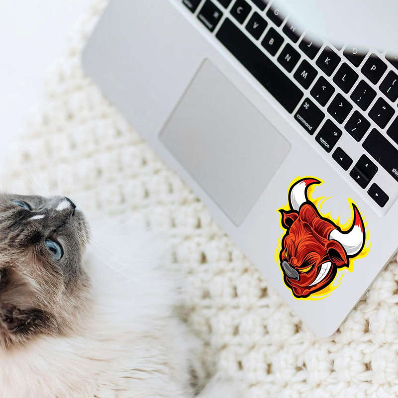 Unleash bold energy with the Fiery Bull Head Sticker, a striking decal showcasing an aggressive red bull head surrounded by vivid yellow flames. Perfect for those who love dynamic and vibrant designs, this durable vinyl sticker brings personality to cars, laptops, walls, and more. Its weatherproof and fade-resistant construction ensures it maintains its quality and vibrancy indoors and outdoors. Available in multiple size options, it’s easy to find the perfect fit for your needs. The peel-and-stick application makes it a hassle-free way to make a bold statement.