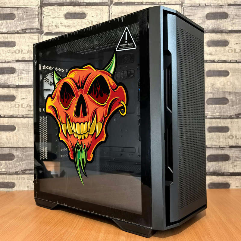 Unleash your edgy style with this fiery demon skull sticker, featuring a vivid design in bold orange, yellow, and green tones. Intricately detailed with sharp horns, flaming eyes, and a devilish grin, this colorful vinyl decal brings a fierce gothic aesthetic to life. Crafted from high-quality vinyl, it resists fading, peeling, and weather damage, making it suitable for both indoor and outdoor use. Whether you’re customizing a laptop, bike, or personal space, this sticker combines durability with eye-catching artistry. Easy to apply and remove, it’s available in multiple sizes, ensuring a perfect fit for your creative projects.