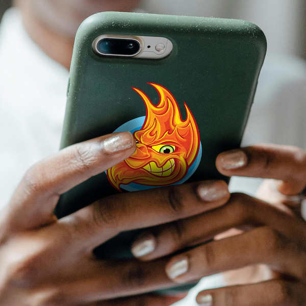 Unleash your inner mischief with this fiery devil sticker. This eye-catching decal features a cartoonish depiction of a devil engulfed in flames, with a wide grin and glowing green eyes, creating a fun and slightly spooky vibe. The vibrant red and orange flames contrast with the devil’s darker features, making the design pop. Made from high-quality, removable vinyl, this sticker is perfect for adding a touch of personality to your laptop, water bottle, or any smooth surface. It’s a great way to express your unique style and add a bit of playful menace to your belongings. Available in multiple size options.