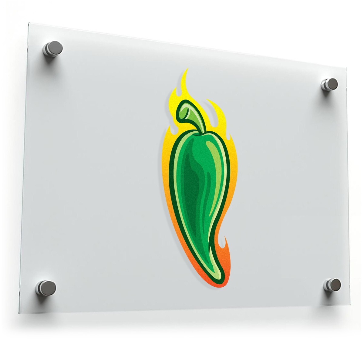 Fiery Green Chili Pepper Vinyl Sticker 🌶️ Spice Up Your Space: This fiery green chili pepper sticker with a vibrant flame backdrop adds a bold, spicy touch to any surface, perfect for those who love a little heat! 🌶️