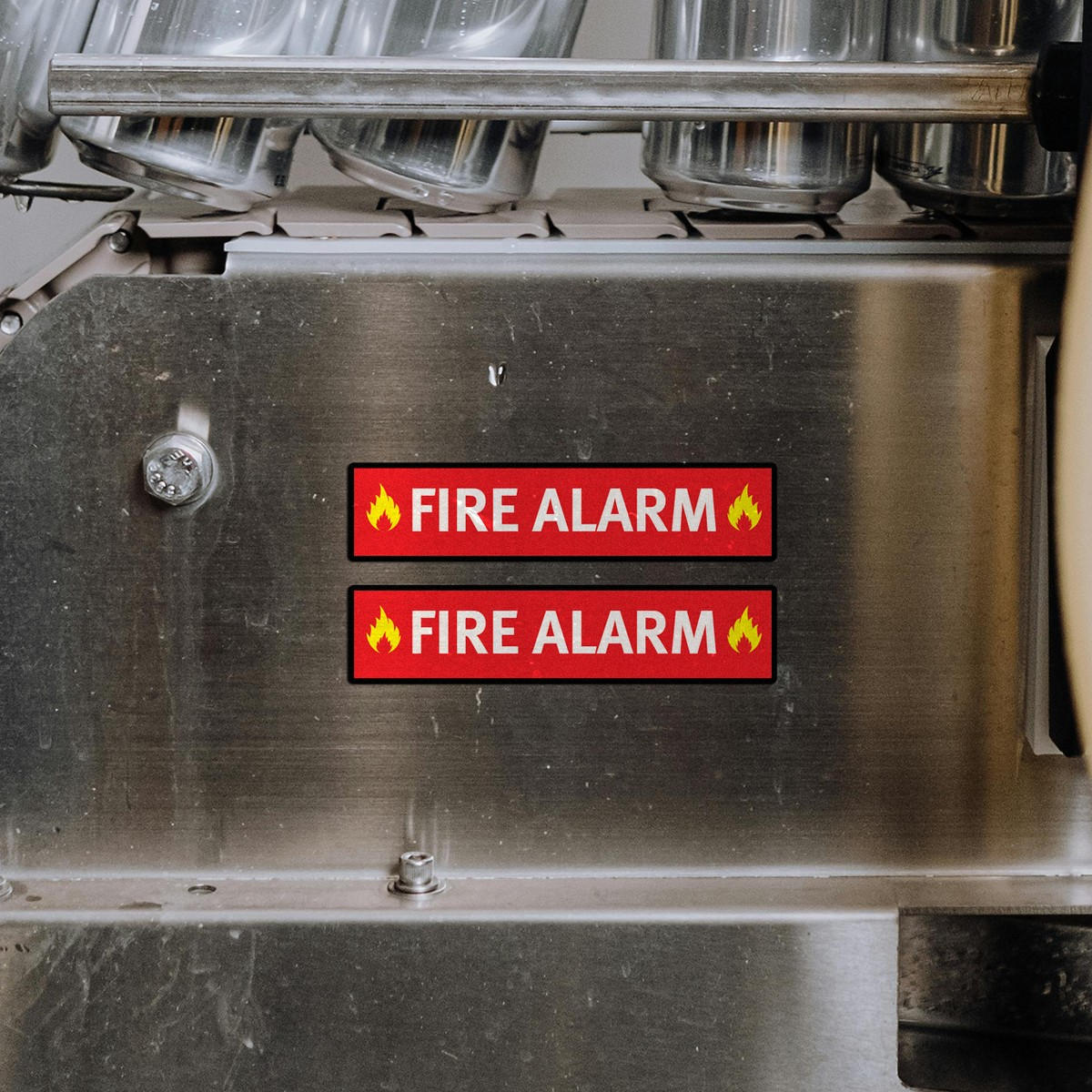 Ensure safety and preparedness with this set of two high-visibility fire alarm stickers. Designed with bold red colors and a flame icon, these stickers are easily noticeable in case of an emergency. Made from durable, weatherproof vinyl, they are perfect for both indoor and outdoor use, ensuring long-lasting performance in any environment. Whether applied to walls, doors, or emergency equipment, these fire alarm decals are easy to apply and remove without leaving residue. Ideal for offices, schools, warehouses, and public spaces, these stickers help ensure that fire alarm locations are clearly marked and accessible.