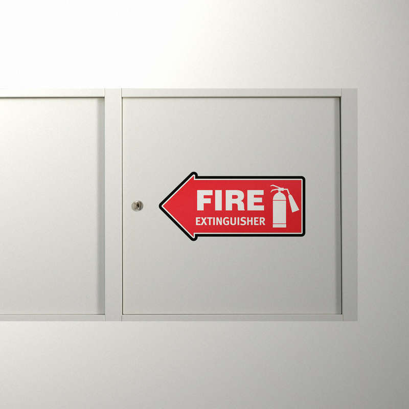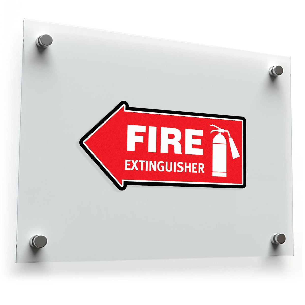 Enhance fire safety with this directional “Fire Extinguisher” sign, designed with a bold red background and a clear white arrow pointing to the extinguisher’s location. Made from durable vinyl, this sticker is ideal for workplaces, public buildings, and homes, improving visibility and quick access in emergencies. Its high-quality adhesive ensures that the sign remains securely in place on walls, doors, or other surfaces, providing long-lasting visibility without damage. Available in multiple sizes, this fire extinguisher arrow sign is an essential addition to any safety-conscious environment.