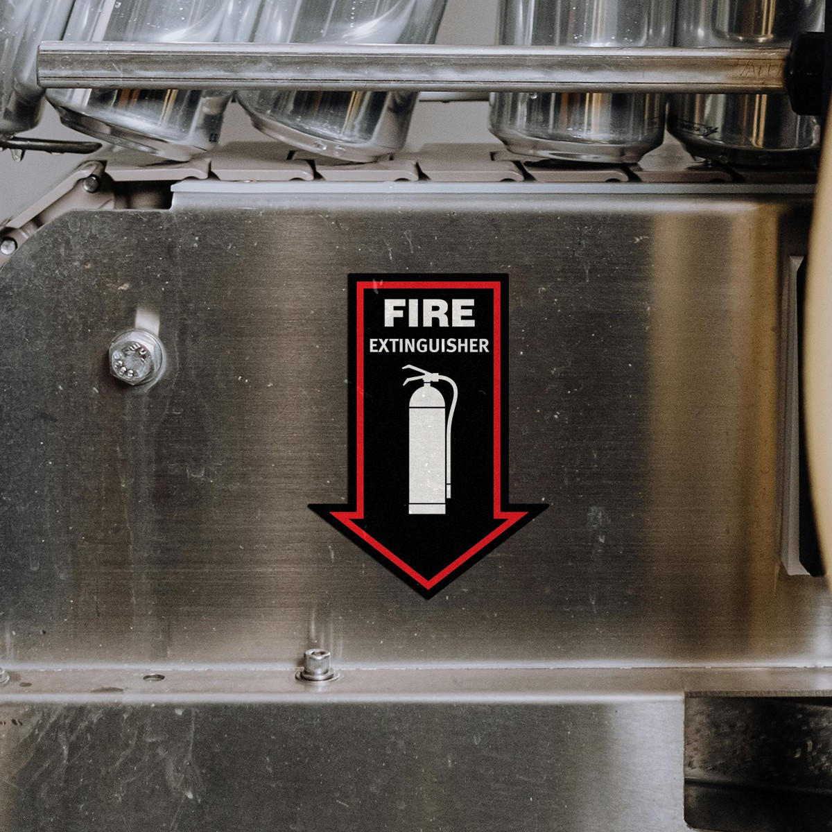Enhance safety in your workplace with this clear and bold fire extinguisher directional sign. Made from durable, weatherproof vinyl, this sticker is designed for both indoor and outdoor use, ensuring long-lasting performance. The bright red arrow and bold lettering make it easy to spot in an emergency, helping to guide people quickly to the fire extinguisher. Easy to apply and remove without leaving residue, this sticker is ideal for workplaces, warehouses, or any public space where safety is a priority. Ensure compliance with safety regulations and improve emergency preparedness with this essential fire extinguisher sign.