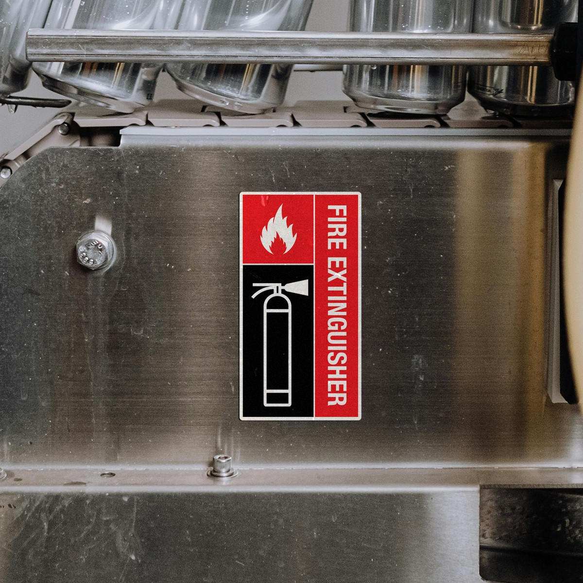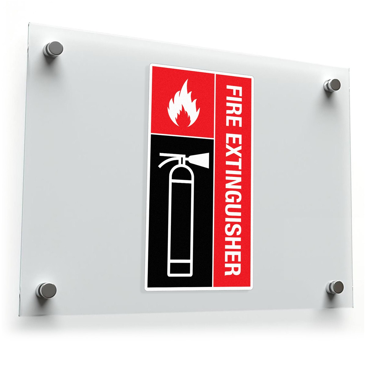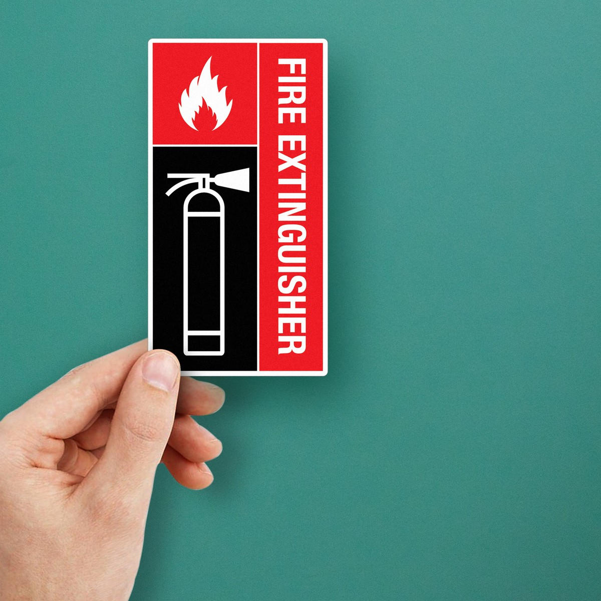 Ensure quick and clear identification of fire extinguishers with this high-visibility safety sticker. Designed for walls, doors, and emergency areas, this durable vinyl decal is perfect for workplaces, public buildings, and homes. Its vibrant red and black design stands out, making fire safety equipment easy to find in case of an emergency. The waterproof and weather-resistant material ensures long-lasting use, both indoors and outdoors. With its simple peel-and-stick application, the fire extinguisher sticker is easy to install without leaving residue. Available in multiple sizes to fit any emergency area.