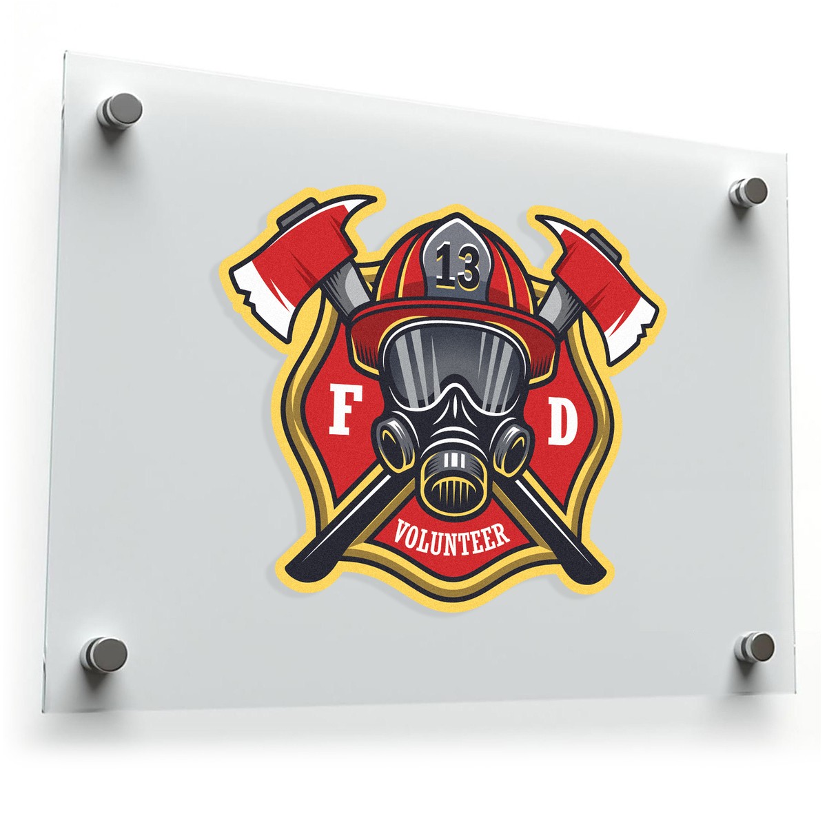 Celebrate the courage and dedication of volunteer firefighters with this bold firefighter volunteer sticker. Featuring a dynamic fire department logo with crossed axes, a gas mask, and the number 13, this durable vinyl decal is the perfect way to show your pride. Ideal for personalizing your gear, vehicle, or any smooth surface, this sticker is designed to withstand tough outdoor conditions without fading or peeling. Whether you’re a firefighter or a supporter, this decal is a great way to express appreciation for the firefighting community and their lifesaving work.