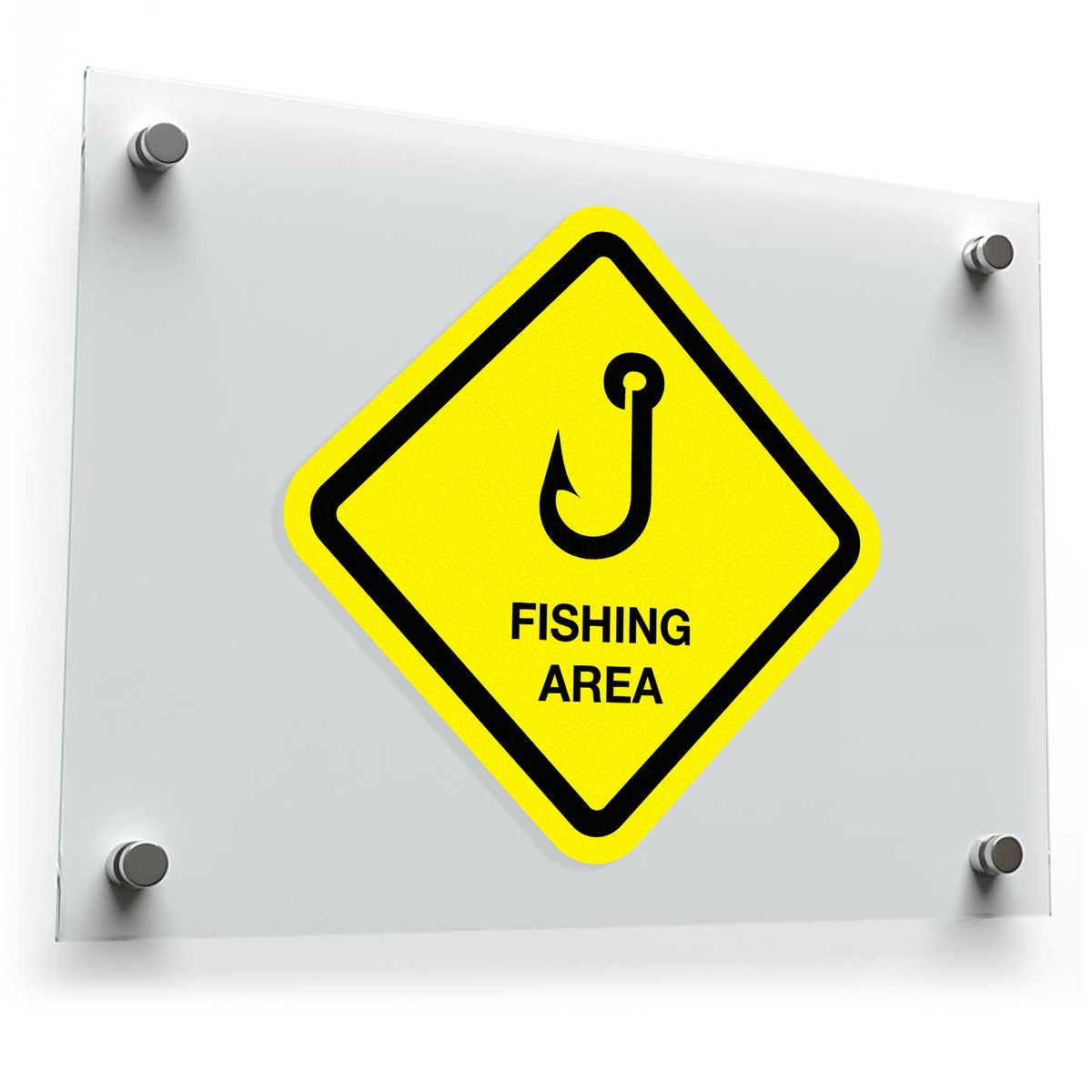 Mark your territory with this bold “Fishing Area” vinyl decal. Featuring a striking black fishing hook icon on a vibrant yellow background, this warning sign-style sticker is perfect for fishing enthusiasts and boat owners alike. Crafted from premium vinyl, it is weatherproof, waterproof, and fade-resistant, making it suitable for outdoor use on boats, cars, fishing gear, laptops, and even walls. The decal applies smoothly and removes cleanly without residue, offering hassle-free customization. Whether you’re adding a personal touch to your boat or creating a fun fishing-themed space, this durable decal is a standout choice. Available in multiple size options to suit your needs.