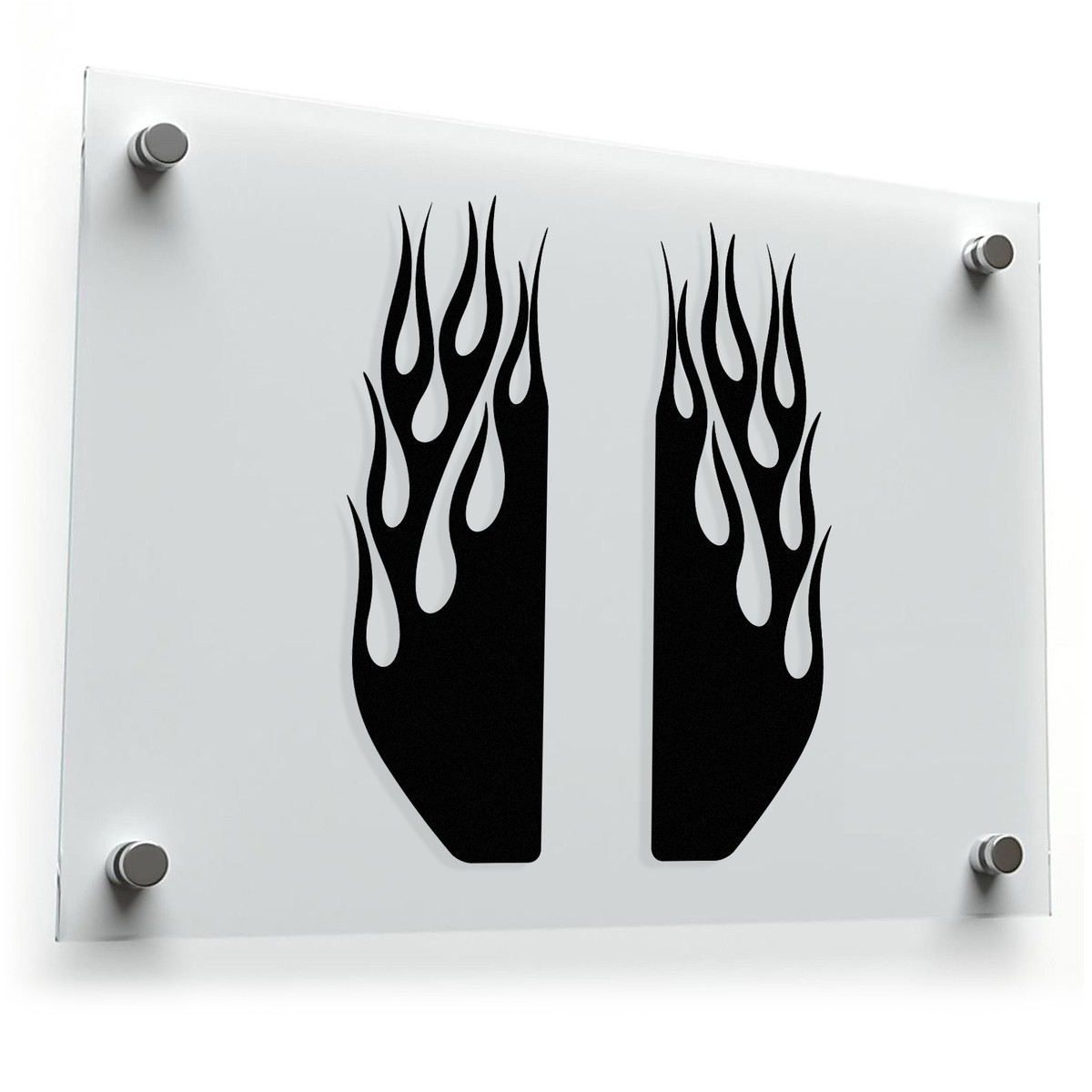 Add a fiery touch to your car, motorcycle, or home decor with this set of flame accent vinyl stickers. Featuring bold black flame silhouettes, these decals provide a dynamic and customized look for vehicles, walls, or any smooth surface. Crafted from durable, weatherproof vinyl, they resist fading, peeling, and wear, making them perfect for both indoor and outdoor use. Their sleek black finish enhances any background, delivering a stylish and eye-catching effect. Easy to apply and remove without residue, these flame stickers are available in multiple size options, offering versatility and style for your personal or automotive projects.