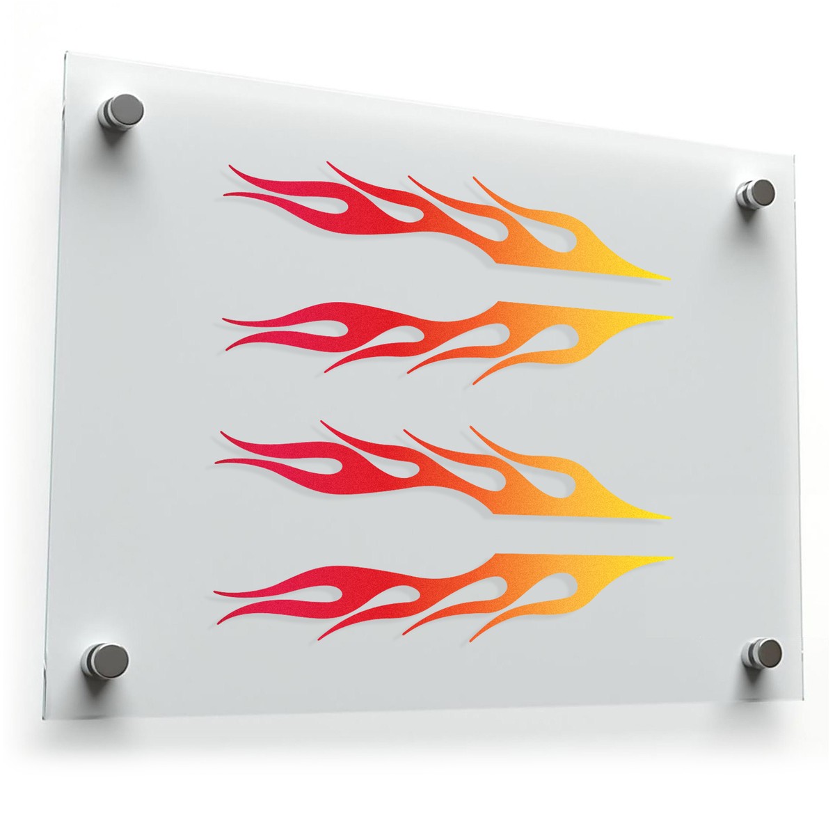 Ignite your style with this set of bold flame vinyl decals. Featuring a dynamic red and yellow gradient design, these stickers bring a fiery look to cars, bikes, water bottles, and more. Made from durable, weather-resistant vinyl, these decals hold up against outdoor elements while maintaining their vibrant colors. Easy to apply and remove, they leave no sticky residue behind, making them perfect for temporary or permanent use. Available in multiple sizes, this flame decal set is ideal for adding a custom, high-energy touch to any surface.