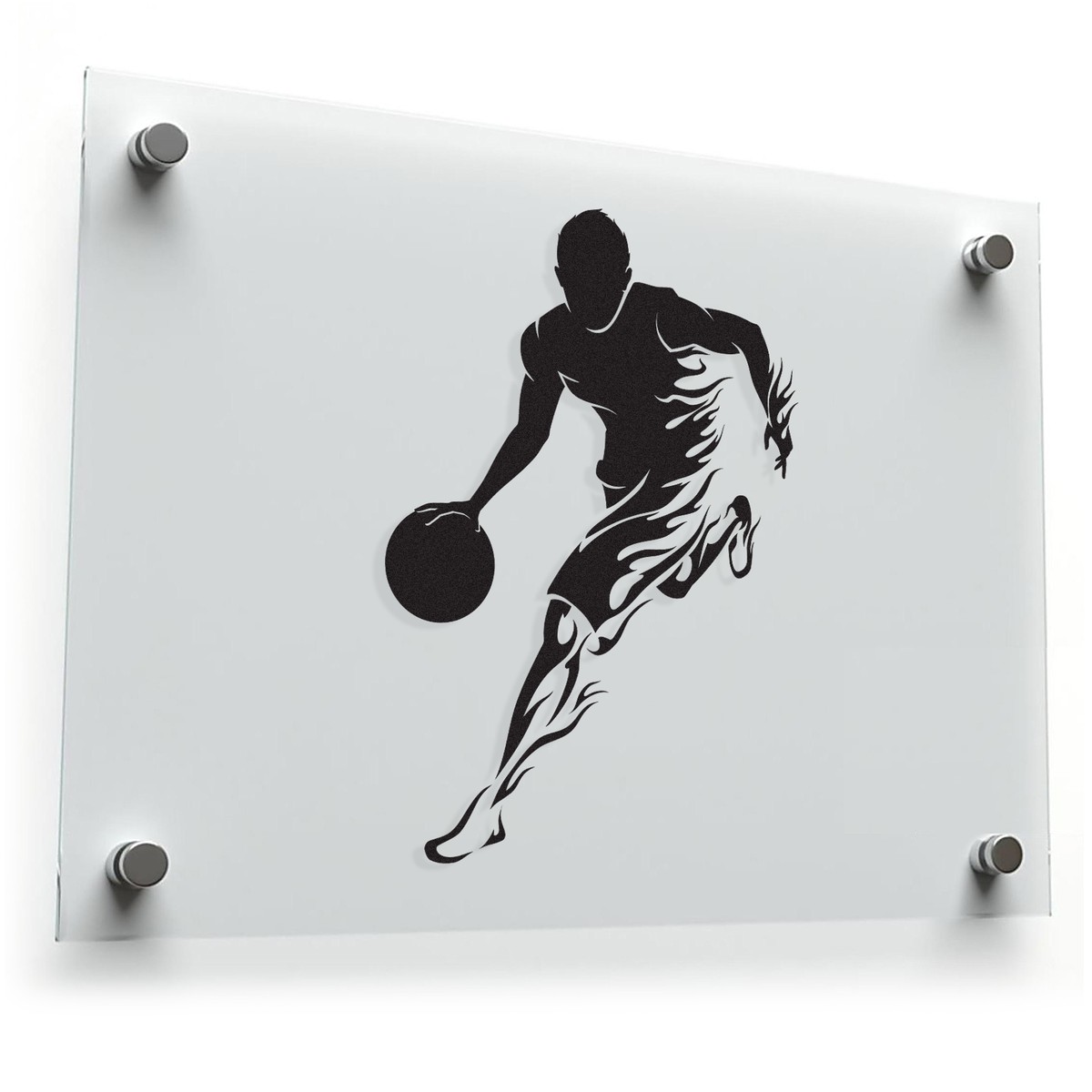 Celebrate the spirit of basketball with this dynamic flaming basketball player sticker, featuring a striking black silhouette design that showcases movement and energy. Made from durable waterproof vinyl, this decal resists fading and wear, making it ideal for both indoor and outdoor use. Perfect for cars, laptops, sports gear, or personal items, it adds a bold and sporty touch to your belongings. Easy to apply and remove without residue, this sticker is ideal for athletes, fans, and collectors who want to show off their love for the game. Available in multiple sizes, it combines durability and style for any use.