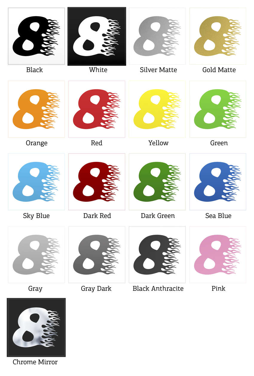 Add fiery energy to your belongings with the Flaming Number 8 sticker. Featuring a bold black “8” with sleek flame details, this premium vinyl decal is perfect for racing enthusiasts, car lovers, and anyone looking to add a touch of speed-inspired flair to their surfaces. Built to withstand the elements, this sticker is waterproof, weatherproof, and scratch-resistant, ensuring long-lasting quality. Easy to apply and remove, it’s ideal for cars, motorcycles, toolboxes, or DIY projects. Available in multiple sizes, this versatile decal brings personality and style to any space.
