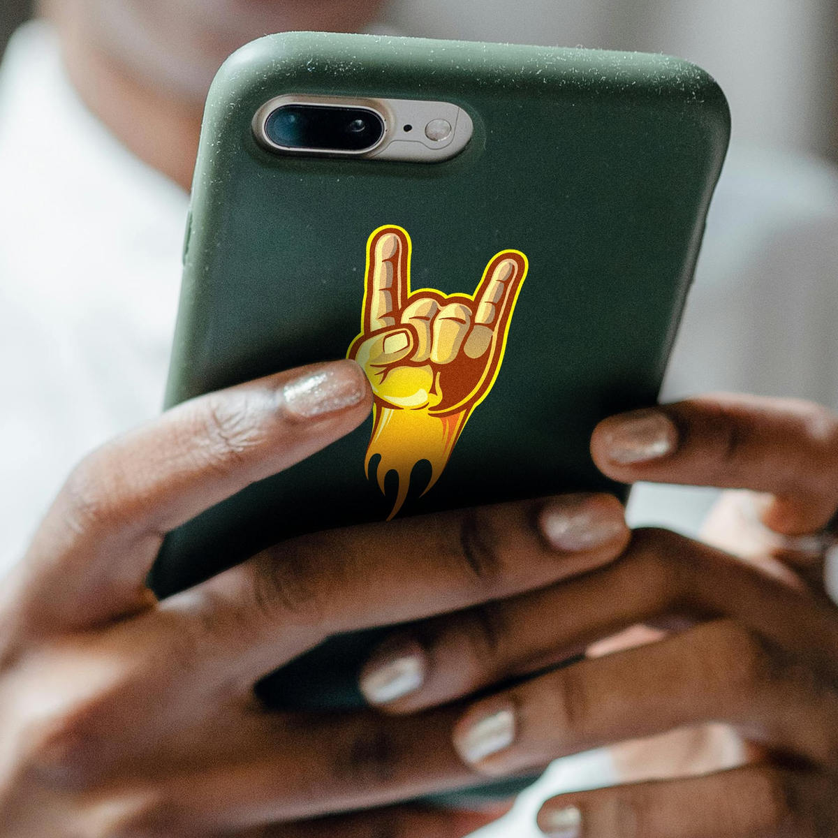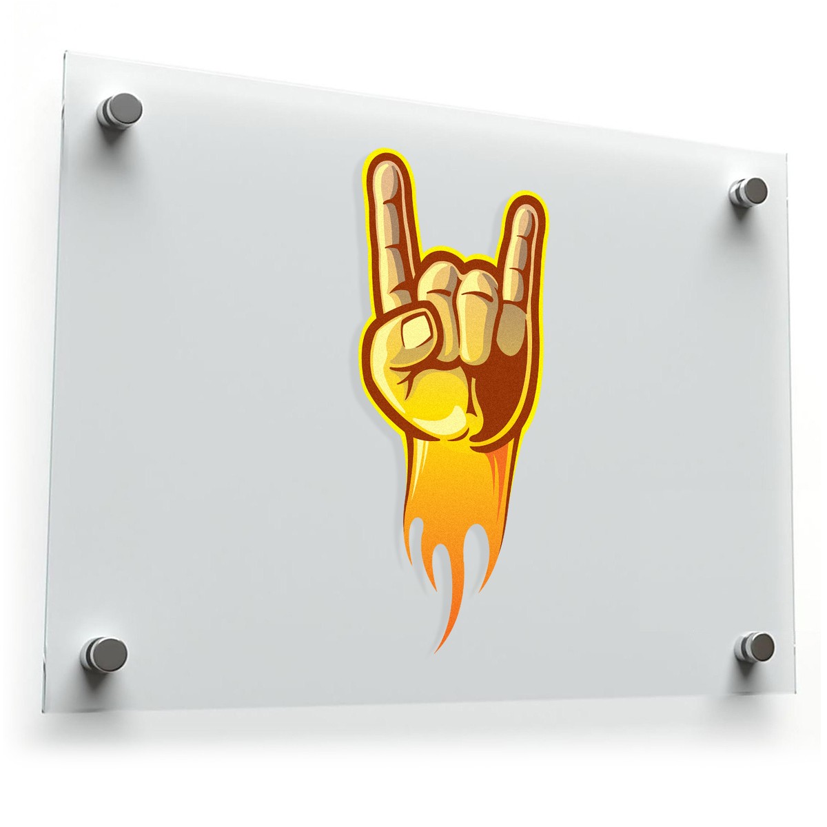 Unleash your inner rocker with this bold, flaming “Rock On” hand symbol vinyl sticker. Featuring a dynamic flame design, this iconic decal is perfect for adding a rebellious touch to your guitar, laptop, car, or any smooth surface. Made from durable, weather-resistant vinyl, this sticker retains its vivid colors and detail, even when exposed to the elements. Easy to apply and remove without leaving residue, it’s available in multiple sizes, including the popular 4×6 inches, making it versatile enough for various uses. Show off your passion for rock music wherever you go!