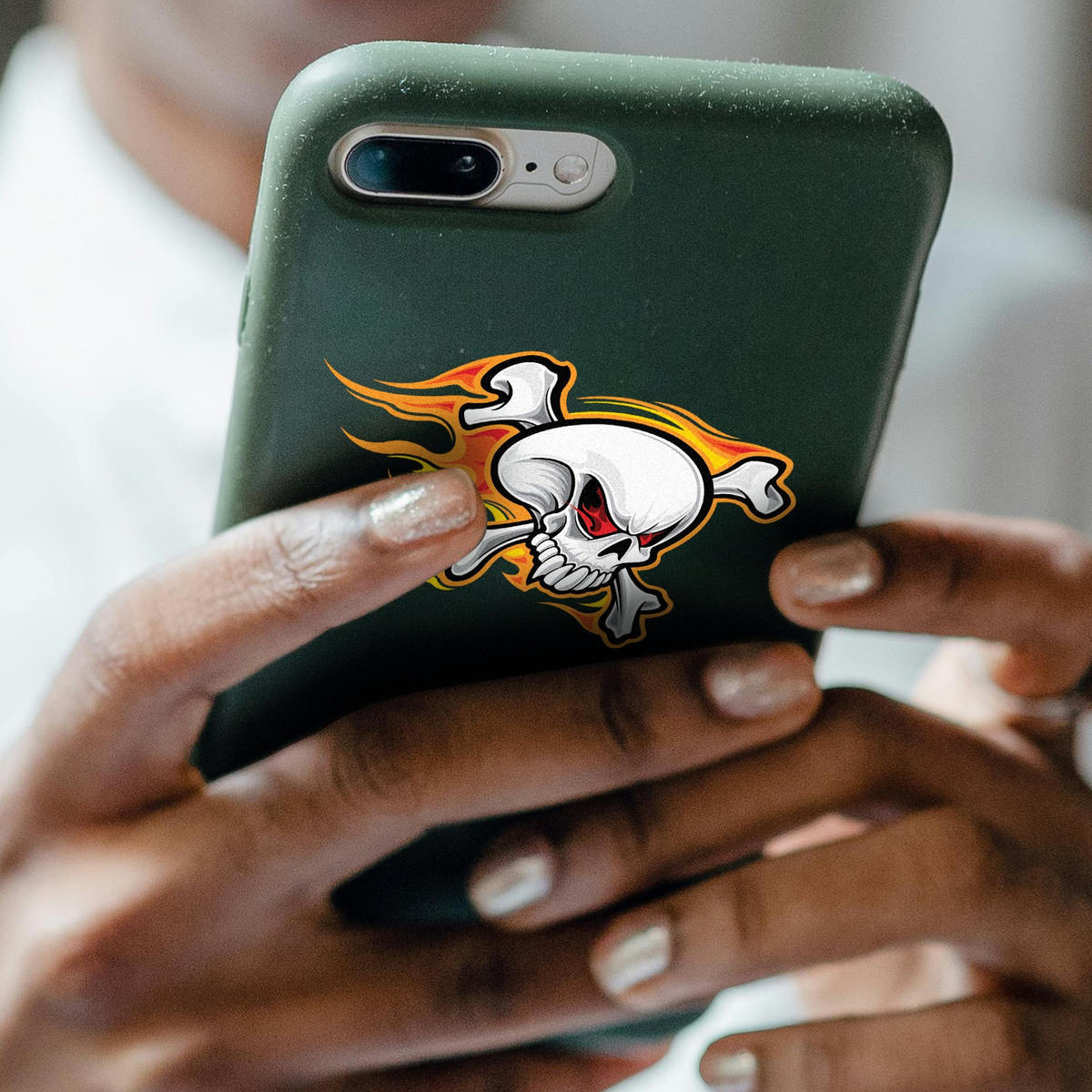 Unleash your rebellious side with this bold flaming skull and crossbones sticker. Featuring a fierce design of flames enveloping a skull, this high-quality vinyl decal is perfect for personalizing your car, motorcycle, laptop, or any other smooth surface. With its weatherproof and fade-resistant properties, the vibrant colors and design stay intact through the elements. Available in multiple size options, this sticker is easy to apply and remove without leaving residue, making it an ideal choice for both permanent and temporary decoration.