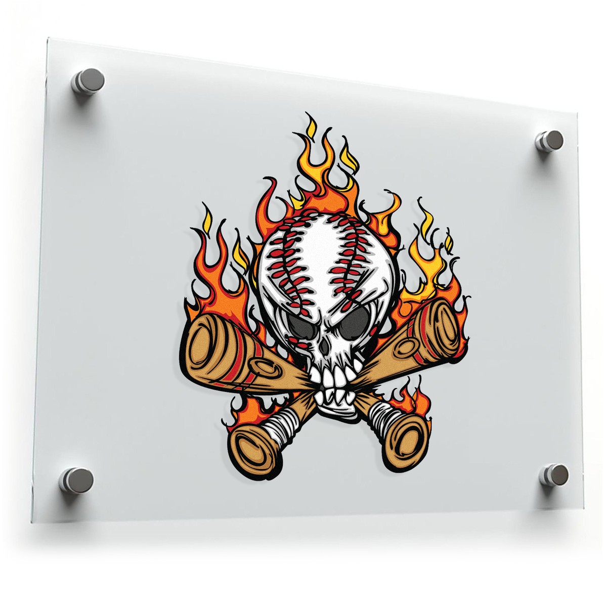 Show off your fiery passion for baseball with this bold flaming skull baseball sticker. Featuring an intense design of a skull with crossed bats and flames, this vinyl decal is perfect for personalizing your sports gear, car, or laptop. Crafted from high-quality vinyl, it’s built to withstand outdoor conditions, ensuring it stays vibrant and intact. Easy to apply and remove, it allows you to customize your belongings with ease, while leaving no residue behind. Whether you’re a die-hard baseball fan or just love edgy designs, this sticker brings a bold, unique flair to any surface.