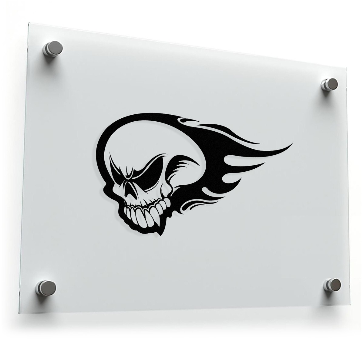 Ignite your decor with this flaming skull silhouette sticker. Rendered in sleek black vinyl, the fierce and bold design features a skull with dynamic flames, making it a perfect addition for edgy and modern aesthetics. Whether used on walls, laptops, car windows, or other smooth surfaces, this versatile decal brings a rebellious and powerful vibe to your space. Available in multiple sizes, it adapts to your needs, from small accents to bold centerpiece designs. Durable and easy to apply, it resists fading and peeling, offering residue-free removal for ultimate convenience.