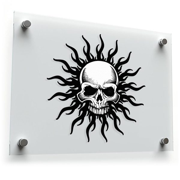 Add a bold edge to your belongings with this flaming skull sticker, featuring a striking black and white design of a detailed skull surrounded by flame-like sunbursts. Perfect for fans of gothic, alternative, or edgy styles, this versatile decal is crafted from durable, waterproof vinyl that’s scratch-resistant and fade-proof, making it suitable for both indoor and outdoor use. Whether applied to cars, laptops, walls, or toolboxes, the high-contrast artwork ensures it catches the eye. Easy to apply and remove without residue, this sticker is available in multiple size options to suit your unique style.