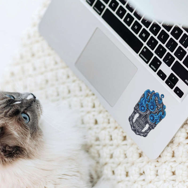 💀 Dark and Edgy Aesthetic: Perfect for fans of gothic and alternative art, this decal adds a dramatic touch with its intricate design and vibrant blue tones. 💀
