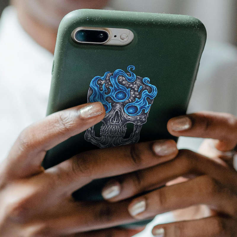 Add an element of intensity to your decor with the Flaming Skull Vinyl Sticker, showcasing a detailed skull design engulfed in striking blue flames. Combining gothic elements with fiery visuals, this decal is perfect for fans of bold and edgy aesthetics. Made from durable, weatherproof vinyl, it resists fading, water, and scratches, ensuring the design remains vibrant over time. Ideal for decorating laptops, water bottles, car windows, or notebooks, this sticker offers a stylish and dramatic accent. Available in multiple sizes, it’s a great gift for gothic art enthusiasts or anyone looking to make a statement.