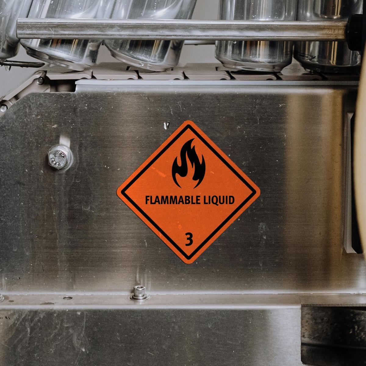 Ensure the safe handling and transportation of hazardous materials with this high-visibility “Flammable Liquid” Class 3 safety sign. Designed for industrial and transportation environments, this durable vinyl sticker features a bright orange background with a bold flame symbol, ensuring easy identification from a distance. Built to withstand harsh conditions, this decal is ideal for use on containers, vehicles, and storage areas. Its strong adhesive backing ensures quick and secure application on any smooth surface, promoting safe practices when dealing with flammable liquids. Available in multiple size options for various needs.