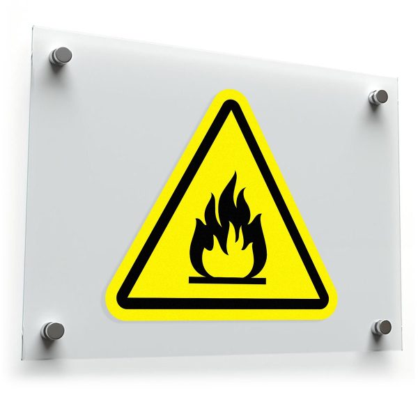 Enhance safety in your facility with this flammable materials warning sticker, designed for high-risk areas with potential fire hazards. Featuring a bold black flame symbol on a vibrant yellow background, this decal ensures high visibility, effectively alerting personnel to exercise caution. Crafted from durable, weather-resistant vinyl, it withstands both indoor and outdoor environments, making it suitable for laboratories, warehouses, and industrial facilities. Available in multiple sizes, this sticker is easy to apply on various surfaces, providing a dependable safety reminder in areas where flammable substances are stored or handled.
