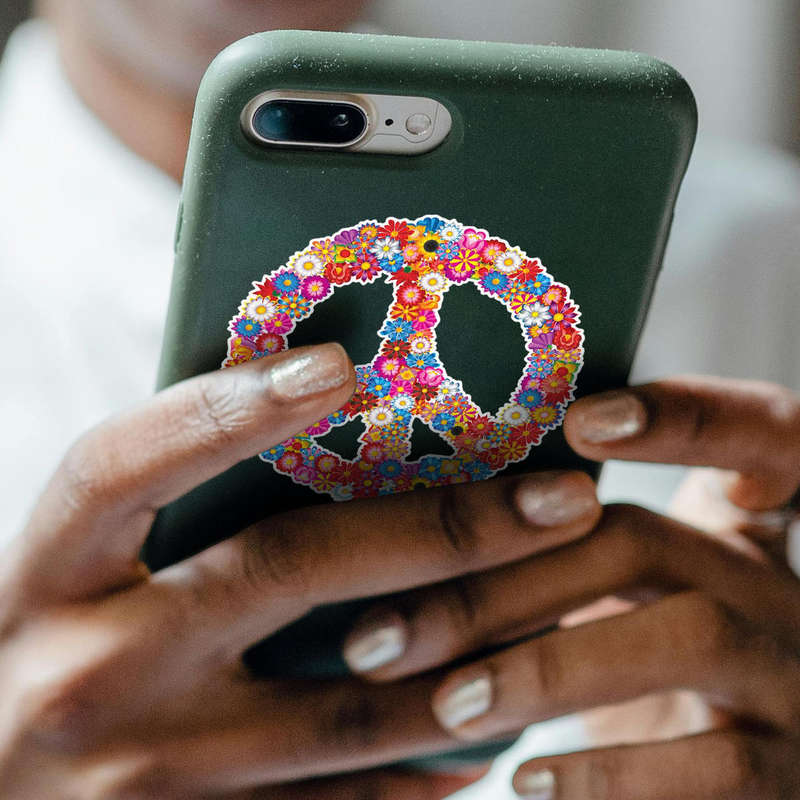 Floral Peace Sign Vinyl Sticker 🌸 Vibrant Floral Design: This peace sign sticker is made up of colorful, intricate flowers, blending retro vibes with a modern, artistic touch. Perfect for adding a pop of color and positivity to any surface! 🌸