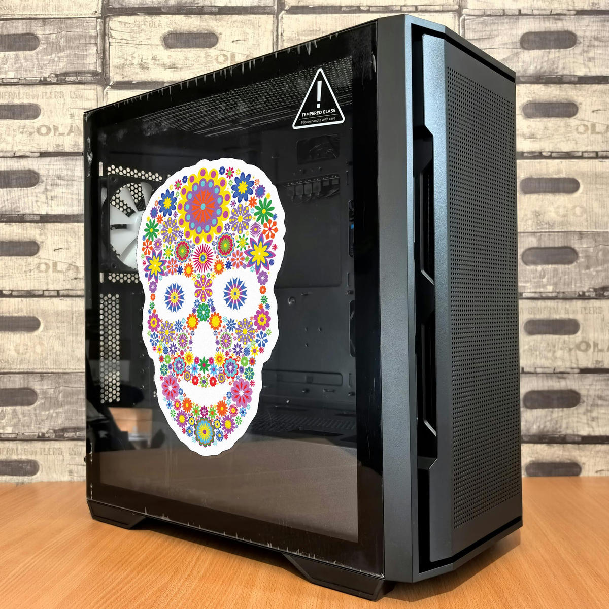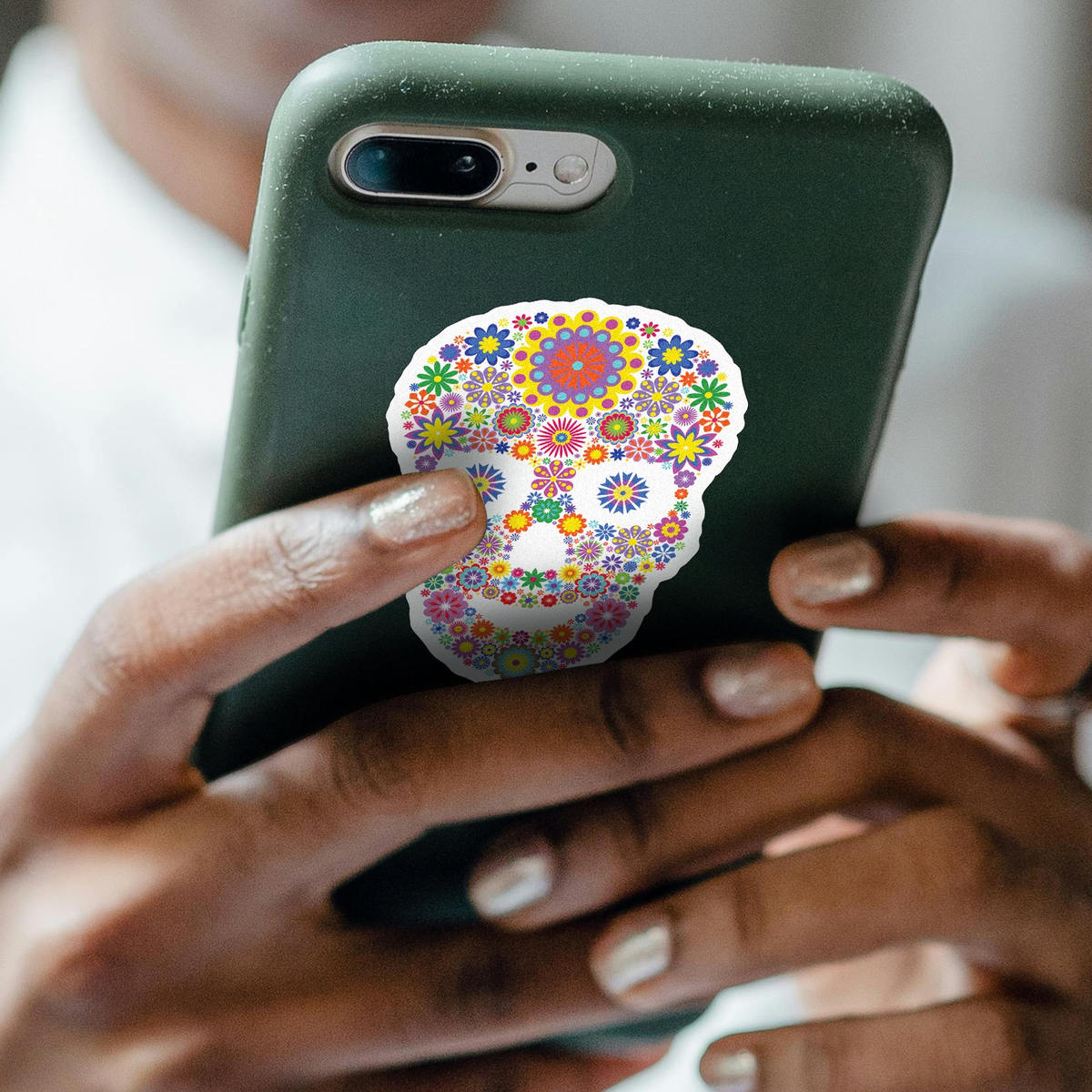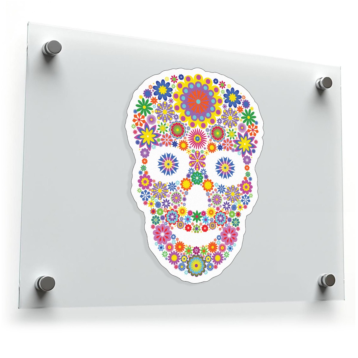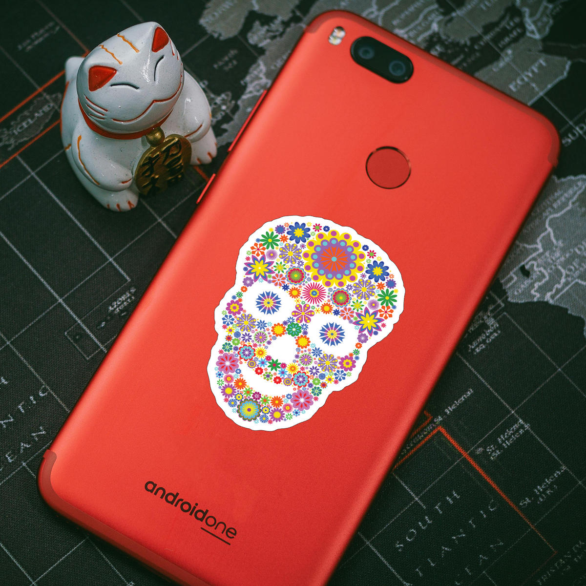 Celebrate life and art with this floral sugar skull sticker, inspired by the beauty of *Día de los Muertos.* This vibrant design features a skull composed entirely of intricate flowers in bright, cheerful colors like yellow, red, blue, and green. Perfect for decorating laptops, cars, walls, notebooks, or water bottles, this high-quality vinyl decal is weatherproof, durable, and easy to apply without leaving residue. The colorful and intricate floral patterns make this sticker a joyful and eye-catching piece for fans of Mexican culture, sugar skull art, or bold, decorative designs. Available in multiple size options, it’s the ideal gift for art lovers and cultural enthusiasts.