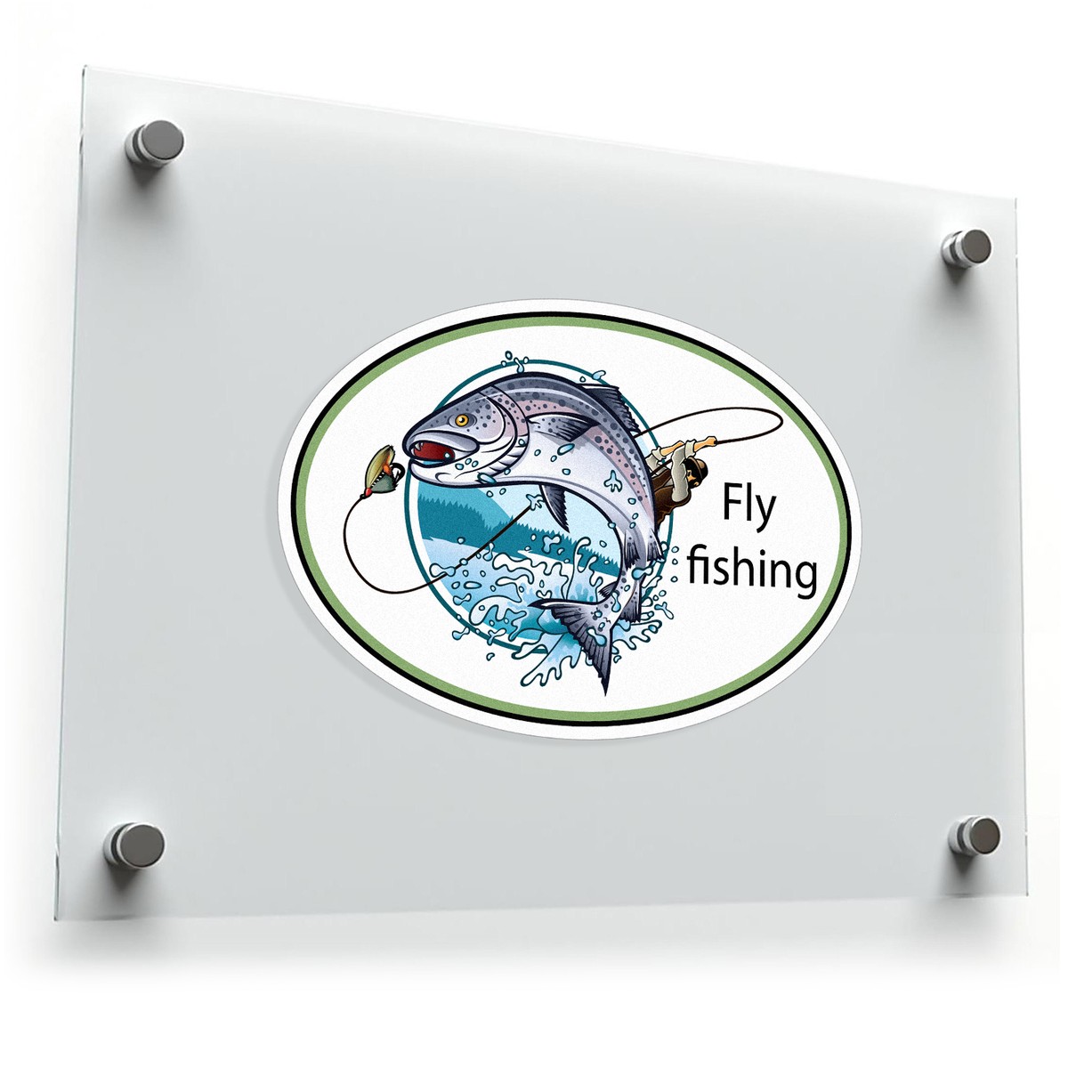 Show off your love for fly fishing with this vibrant Fly Fishing Sticker. Featuring a dynamic design with a fish on the line, this vinyl decal is perfect for cars, boats, or outdoor gear. Made from high-quality, weather-resistant vinyl, this sticker is built to last even in the toughest conditions. The easy peel-and-stick application ensures a quick setup on any smooth surface. Available in multiple sizes, this fly fishing decal is a must-have for any fisherman or outdoor enthusiast looking to personalize their gear or vehicle.