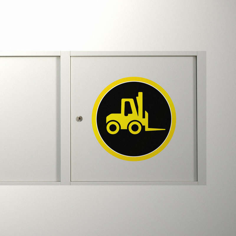 Elevate workplace safety with the high-visibility “Forklift Symbol” sticker, designed with a bold yellow icon on a black circular background. This decal serves as a clear visual indicator of forklift zones, promoting awareness and caution in industrial and commercial settings. Constructed from durable materials, it resists wear, tear, and weather, making it suitable for indoor and outdoor use. The peel-and-stick backing ensures effortless application on machinery, walls, or doors. Available in multiple sizes, this versatile sticker is an essential tool for enhancing safety and compliance in forklift-heavy environments.
