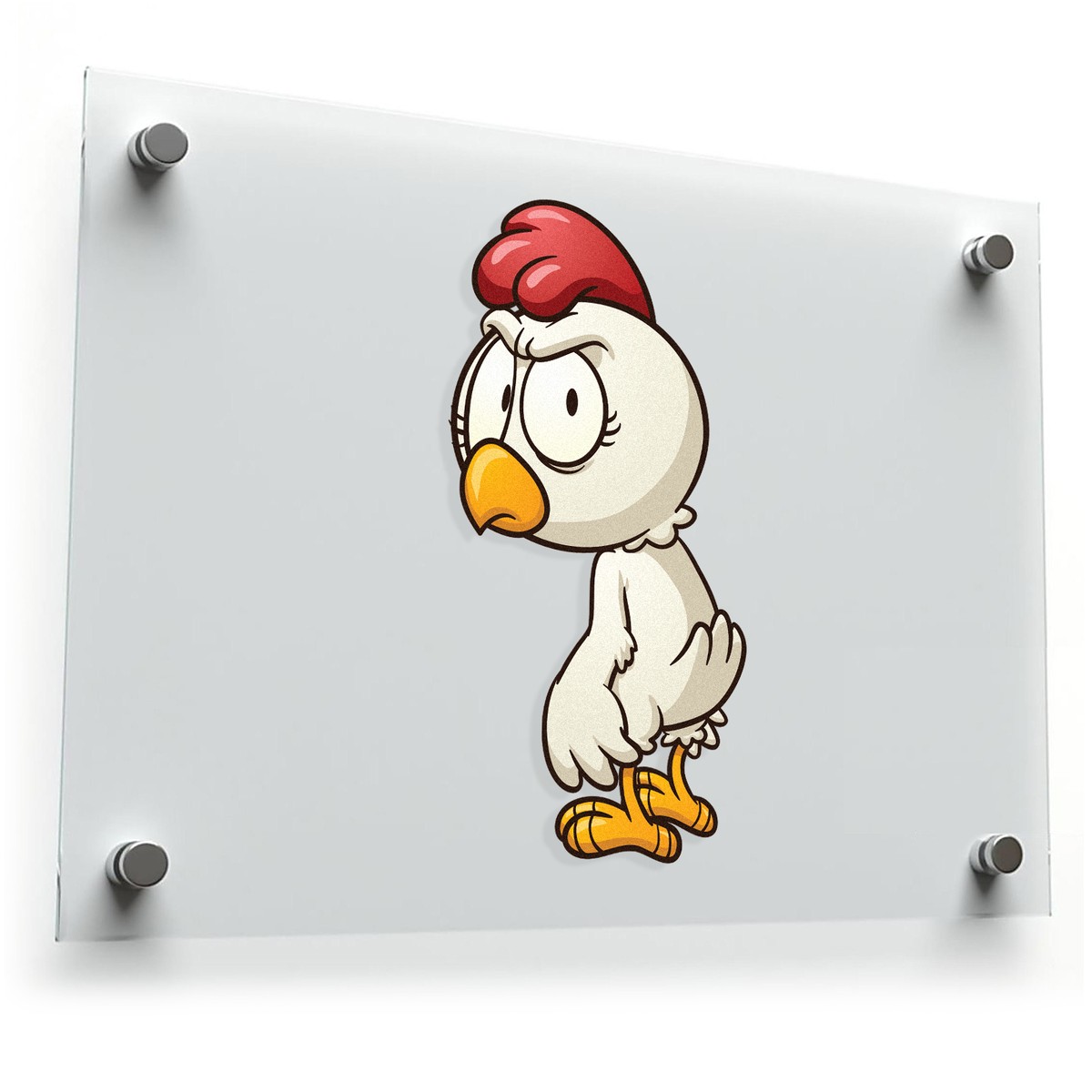 Bring a touch of humor to your decor with this funny cartoon chicken sticker! Featuring an adorable yet angry chicken character, this vinyl decal is perfect for kids’ rooms, laptops, or even farm-themed decor. Its durable construction ensures long-lasting quality, while its easy peel-and-stick design makes application a breeze. Available in multiple sizes, this sticker is a fun way to personalize your space with a unique and playful character.