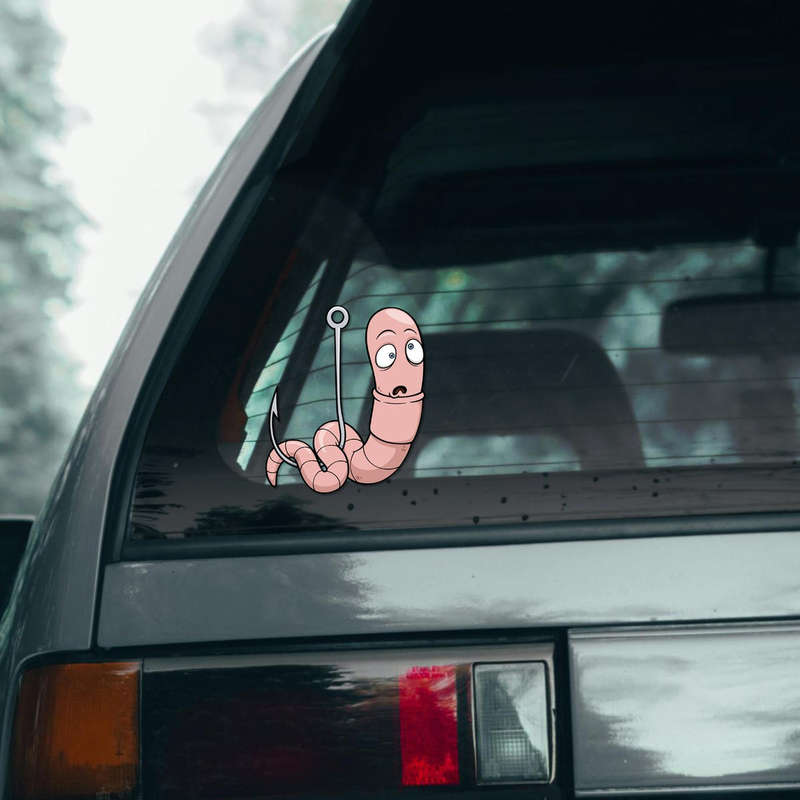😂 Hilarious and Eye-Catching Design: Featuring a surprised worm on a hook, this decal is sure to bring a smile to anyone’s face. It’s a fun conversation starter for any outdoor adventure! 😂