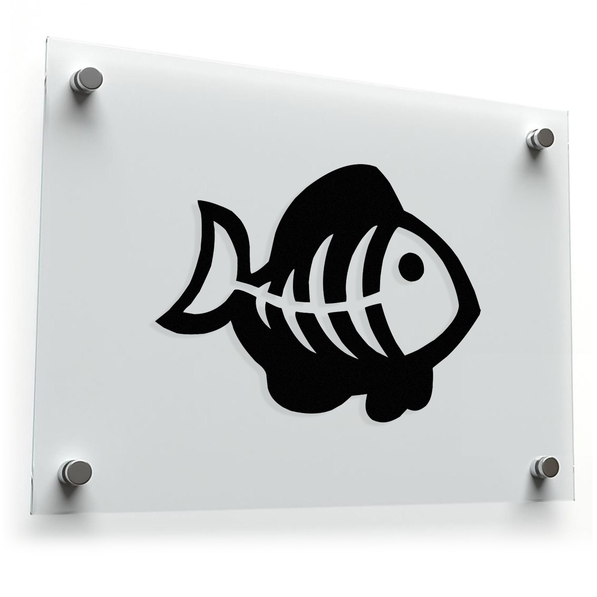 Show off your love for fishing and humor with this funny fishbone decal. This sleek black silhouette sticker features a classic fish skeleton design, perfect for adding a touch of wit to your car, laptop, water bottle, or any smooth surface. Made from durable, weatherproof vinyl, this decal is designed to last, resisting fading and scratches. Its versatile design makes it a great gift for fishing enthusiasts and anyone who enjoys a good laugh. Available in Multiple Size Options. The image shows a black silhouette of a fish skeleton against a white background. The design is simple yet recognizable, with the distinct fishbone structure clearly visible.