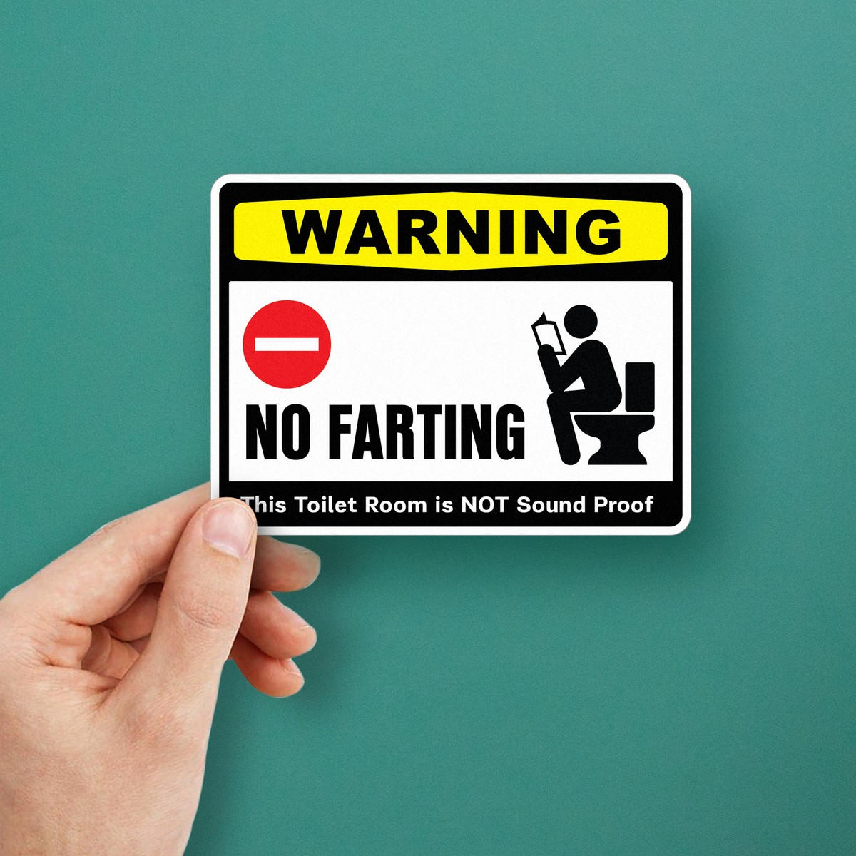 Add some light-hearted fun to your bathroom with this “No Farting” warning sticker. Perfect for both home and public restrooms, this humorous decal serves as a playful reminder that the toilet room is not soundproof. Made from durable, weather-resistant vinyl, it’s built to last and can be easily applied to walls, doors, or mirrors. Whether you’re looking for a unique gag gift or just want to give your bathroom a touch of personality, this bold and funny sticker is sure to make guests laugh. Available in a convenient 3-pack for multiple applications or sharing the fun with friends!