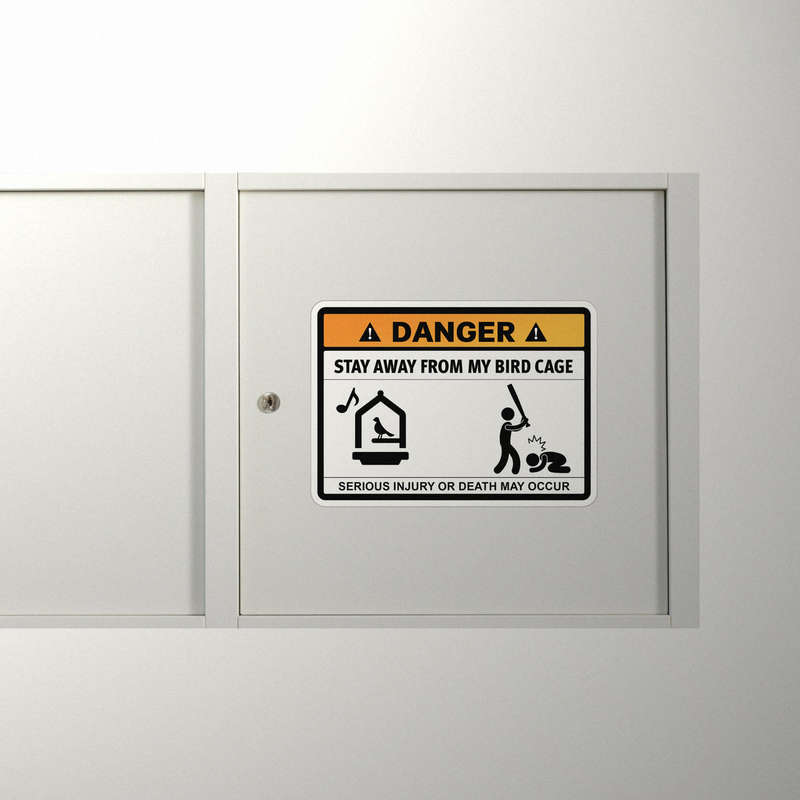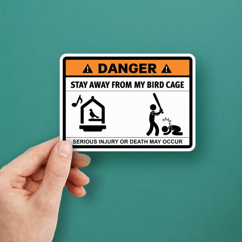 Bring humor and a touch of personality to your space with this “Danger – Stay Away from My Bird Cage” sticker. Designed for bird lovers and pet owners, this funny warning sign decal features a playful graphic that humorously warns of serious consequences for intruders. Perfect for use on bird cages, doors, or walls, this decal is crafted from high-quality, fade-resistant vinyl, making it durable for both indoor and outdoor settings. Available in multiple sizes, this warning sign sticker is easy to apply and remove without leaving residue, making it a versatile and amusing decor piece for any bird-friendly environment.