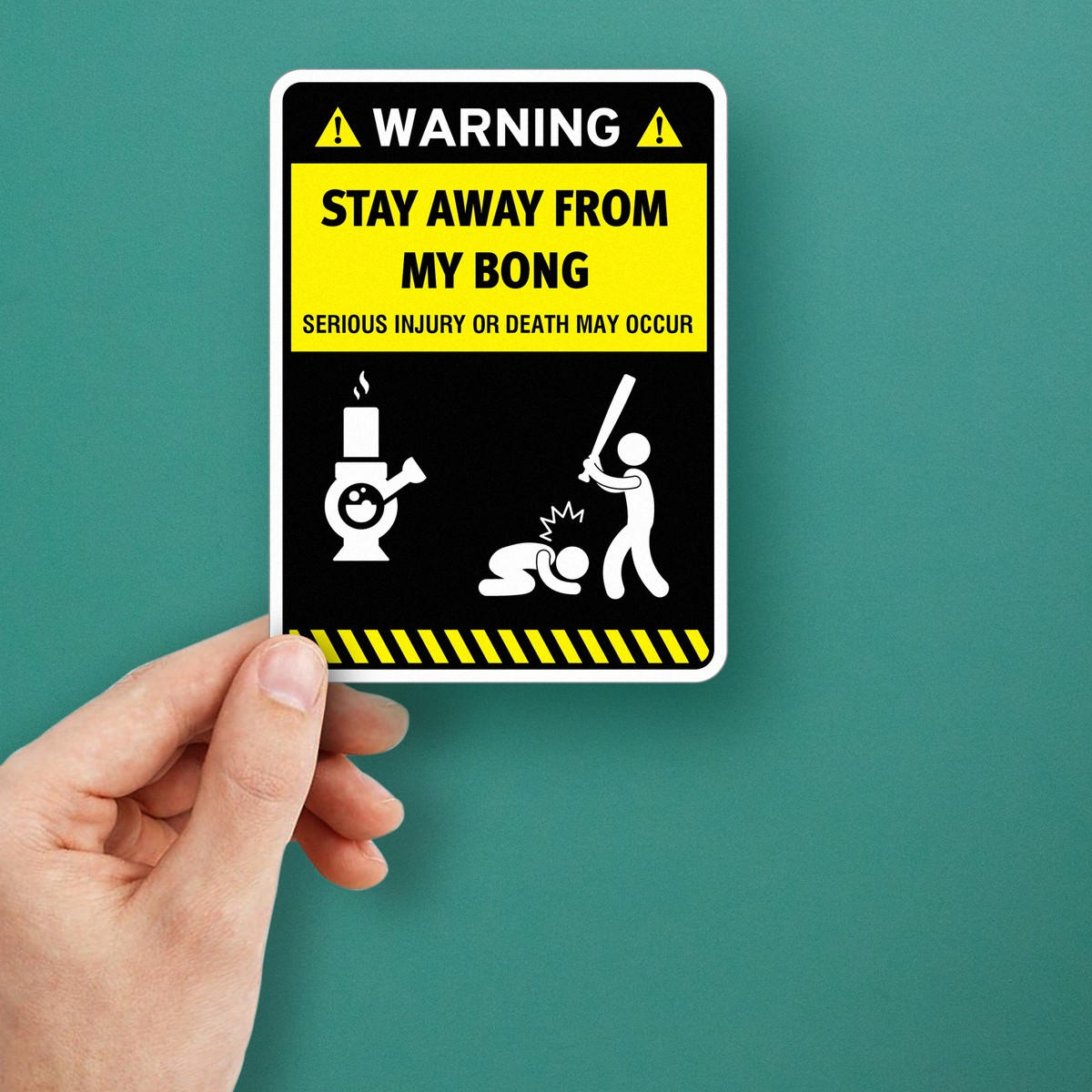 Add a humorous touch to your space with this bold “Stay Away from My Bong” warning sticker. Crafted from high-quality vinyl, this durable decal is both waterproof and long-lasting, making it perfect for indoor or outdoor use. Its playful design, featuring exaggerated cautionary text and fun imagery, is sure to catch attention and spark conversations. Easy to apply to any smooth surface, this sticker is ideal for bong lovers who want to protect their prized possession or add some humor to their smoking space. Available in multiple size options for personalized placement.