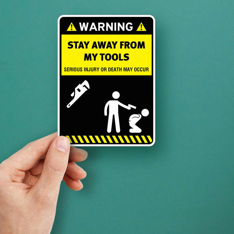 Protect your workspace with this “Stay Away From My Tools” warning sticker, featuring a bold yellow and black design that emphasizes safety and enforces boundaries. Crafted from durable, weatherproof vinyl, this decal resists fading and peeling, making it perfect for indoor and outdoor use. Ideal for workshops, toolboxes, walls, and doors, its bright and eye-catching design ensures clear communication in any setting. Easy to apply and remove without leaving residue, this sticker provides a flexible safety solution for temporary or permanent use. Available in multiple sizes, it’s a must-have for any safety-conscious workspace.