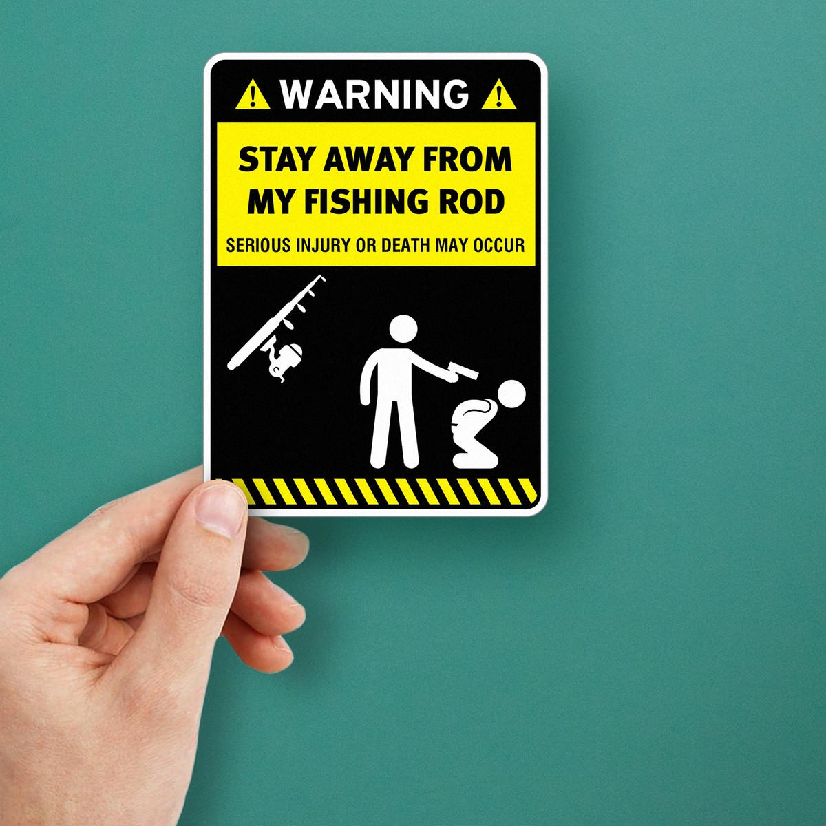 Add a touch of humor to your fishing gear with this funny “Stay Away From My Fishing Rod” warning sticker. Made from high-quality waterproof vinyl, this durable decal is perfect for boats, cars, garages, or any surface where you want to display your fishing pride. Its bold design and easy application make it a must-have for fishing enthusiasts who enjoy a good laugh. Whether you’re looking to personalize your belongings or give a humorous gift to a fellow fisherman, this sticker delivers both style and function. Available in multiple size options for versatility.